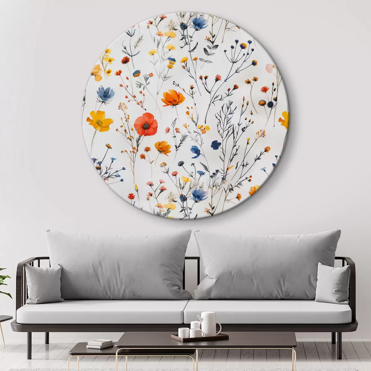 Tableaux rondes Composition florale avec coquelicots et autres fleurs sauvages Nr r40959