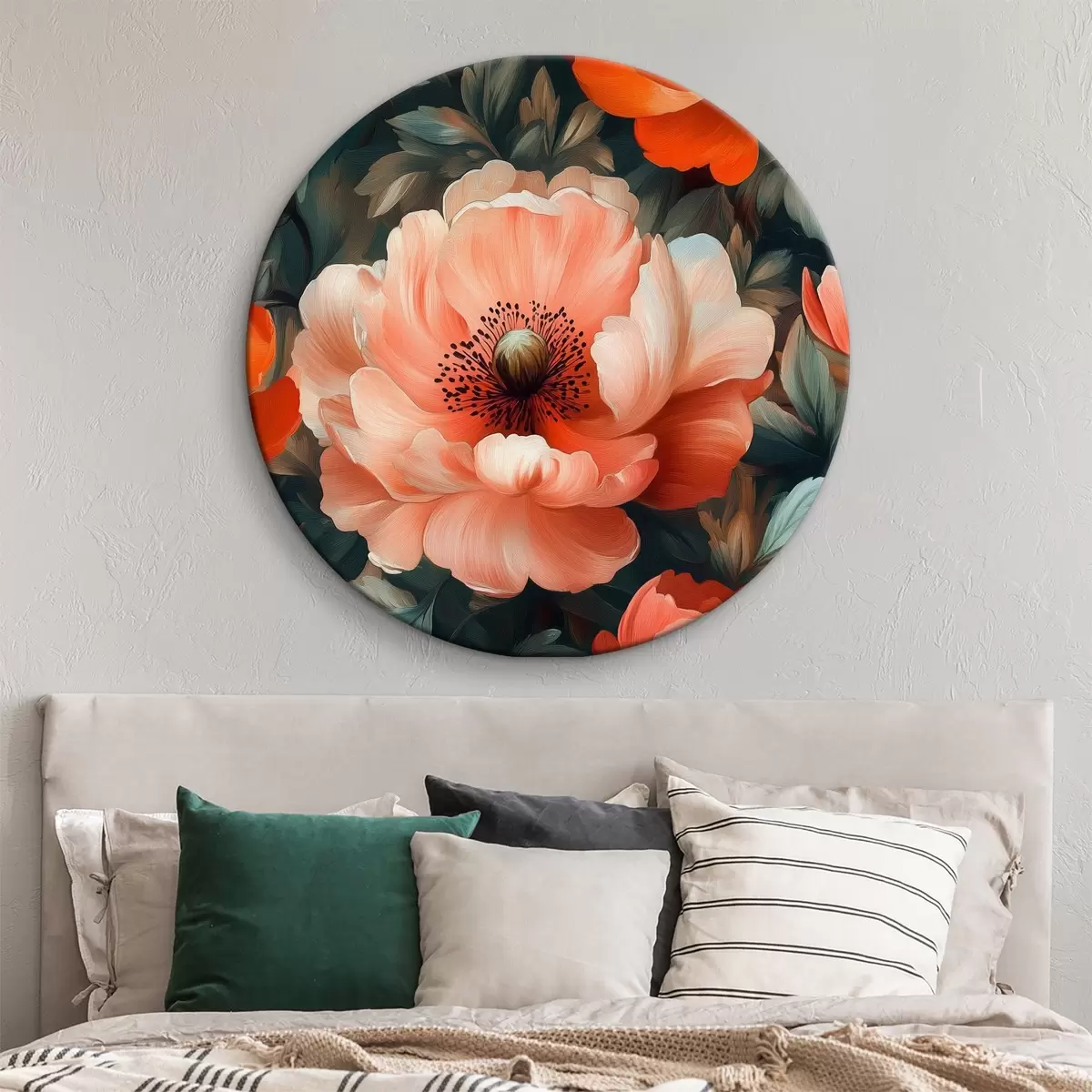 Tableaux rondes Grandes pivoines rouges en délicats coups de pinceau à l'huile r40964
