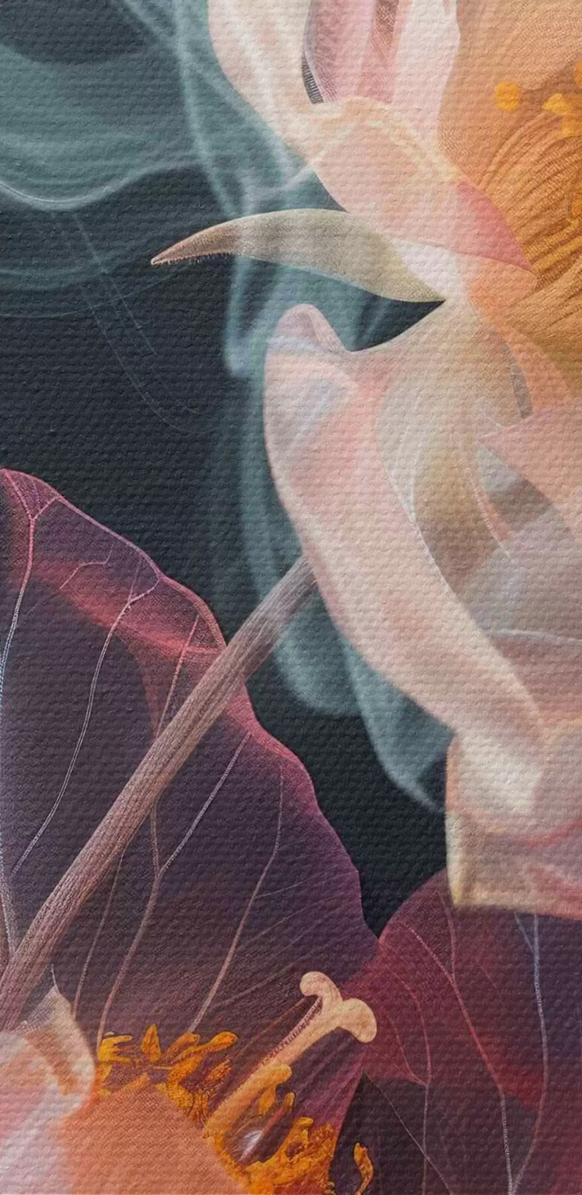 Trois types de matériaux peuvent être commandés : Economic Canvas - matériau dense et durable pour l'impression numérique, identique à la toile de peintre, surface imperméable, reproduction réaliste des détails, matériau à grain moyen. Premium Canvas - la texture ressemble à celle d'une toile de peintre (petits fils entrelacés). Reproduction douce et détaillée de l'image sur une surface mate. Eco-Premium - tissu 100 % coton de haute qualité. Grâce aux fibres naturelles de coton, le matériau est durable et résistant à l'usure. Excellente reproduction des couleurs et des détails.