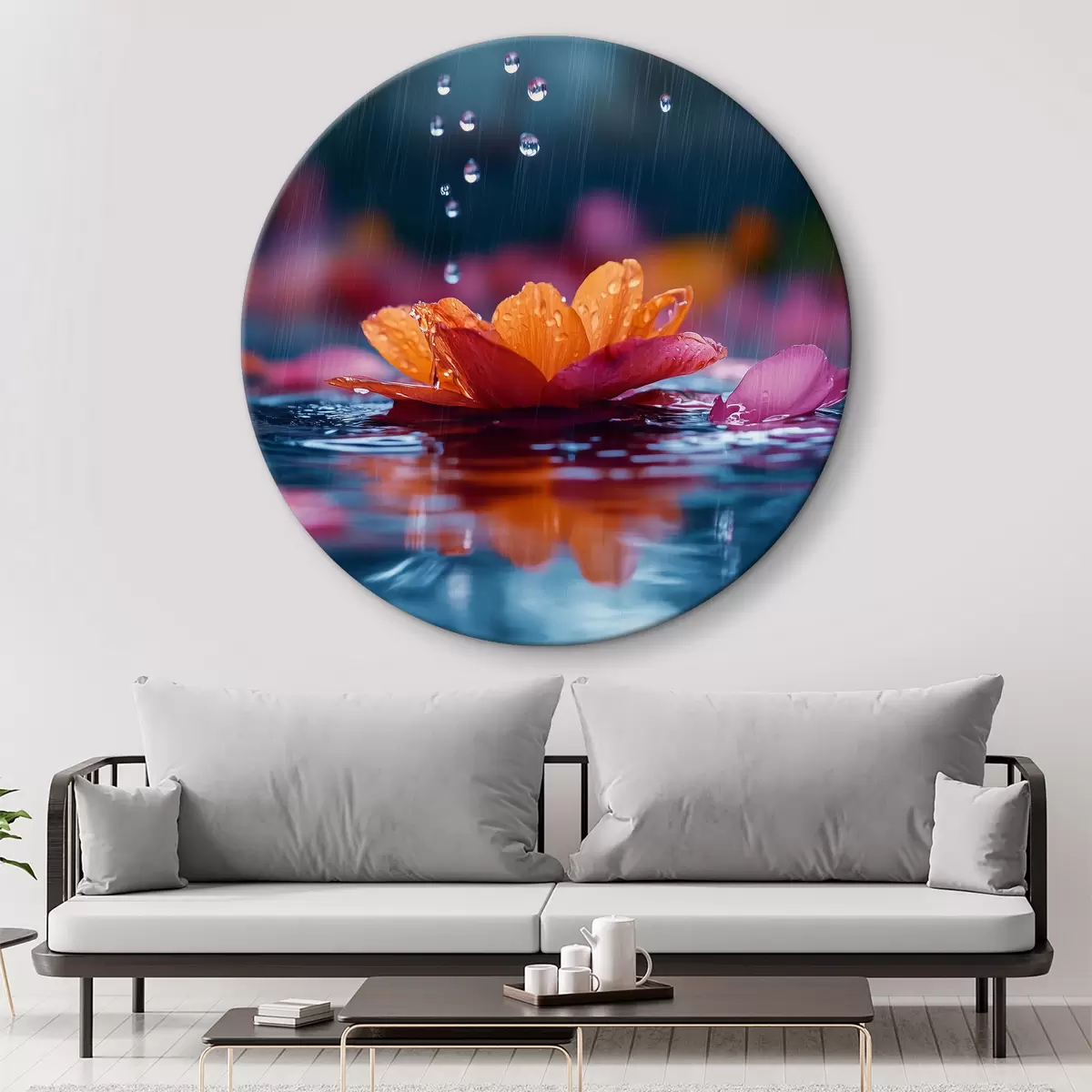 Tableaux rondes Nénuphar avec gouttes de pluie r40977