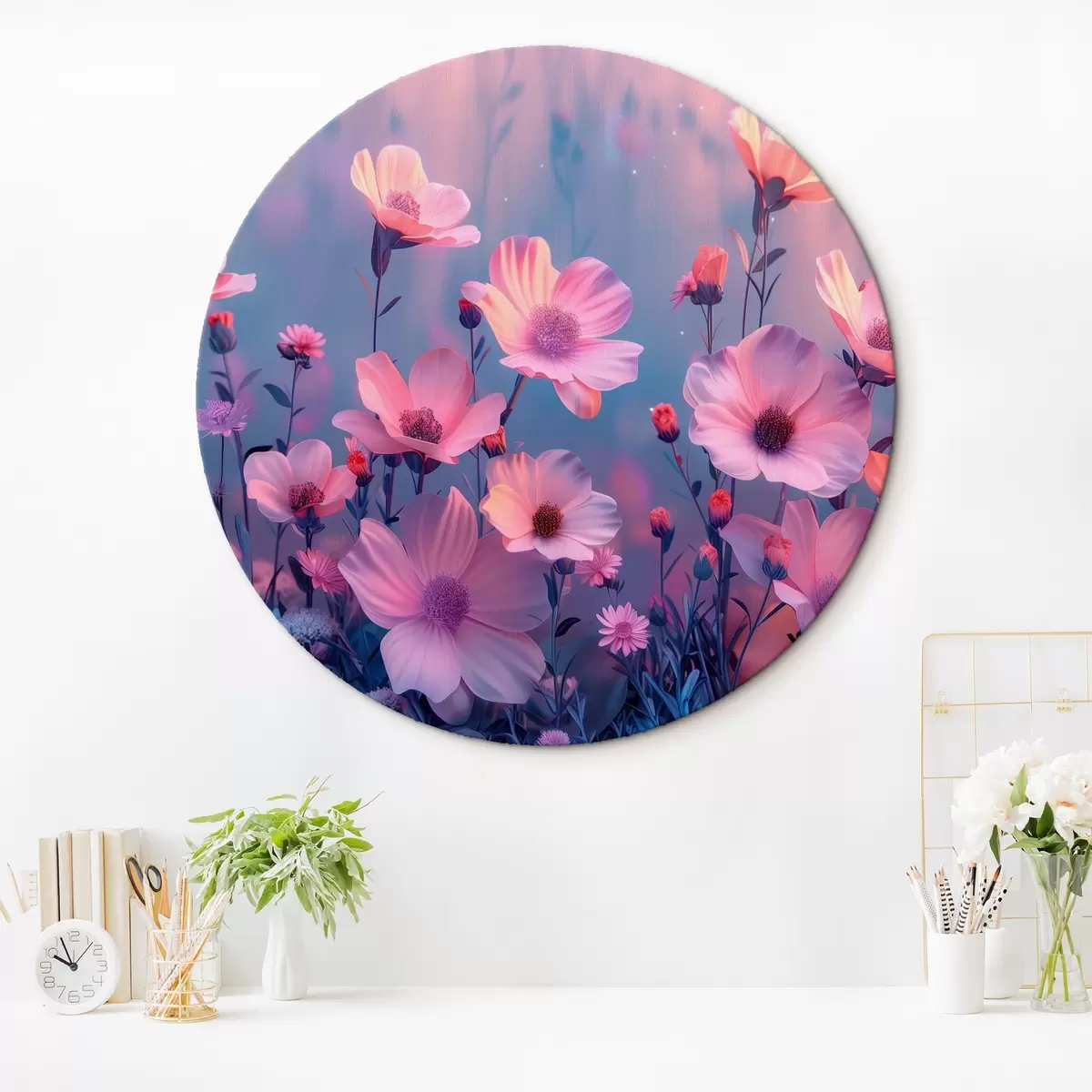 Tableaux rondes Fleurs féeriques dans les tons roses et bleus Nr r40990