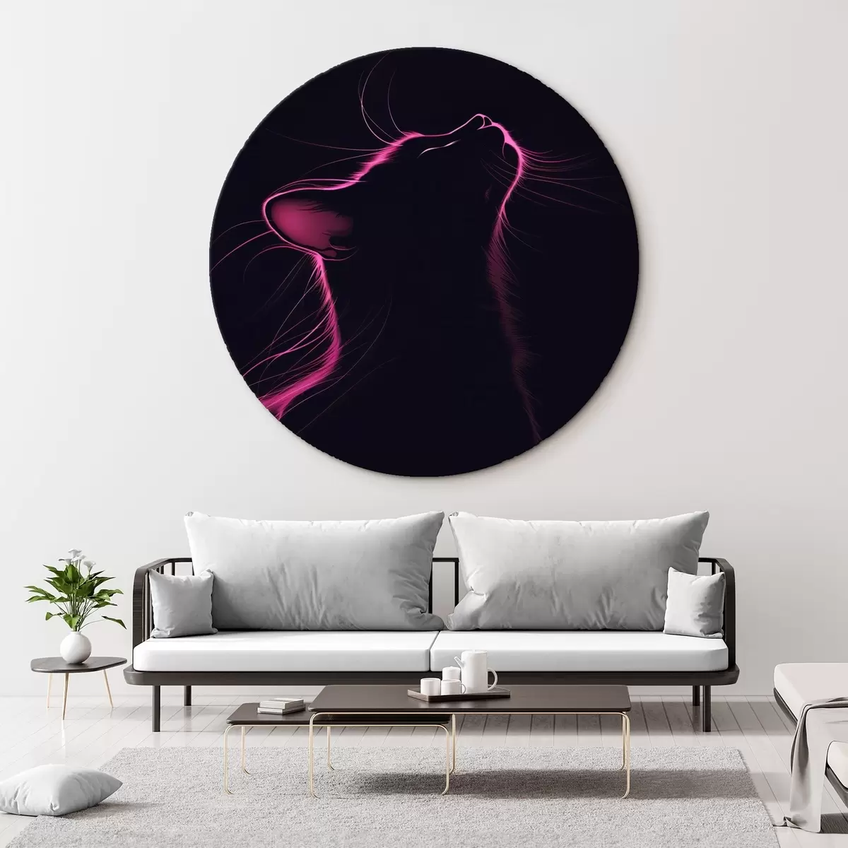 Tableaux rondes Chat rose fluo sur fond noir Nr r40994