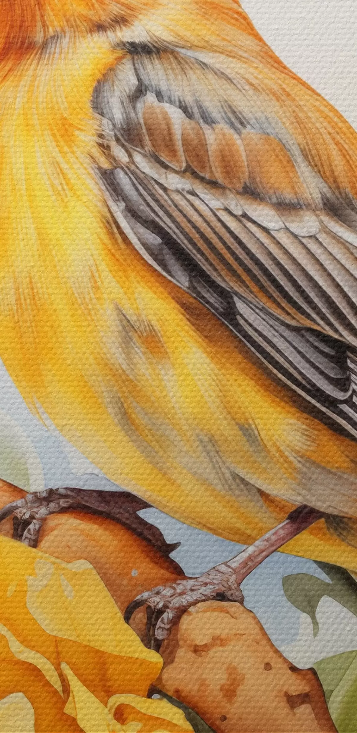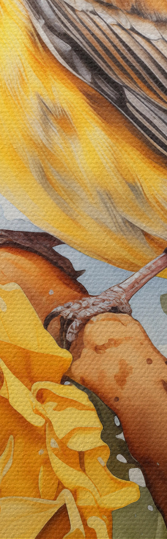 Tableaux rondes Oiseau jaune assis sur un tournesol aquarelle r41015
