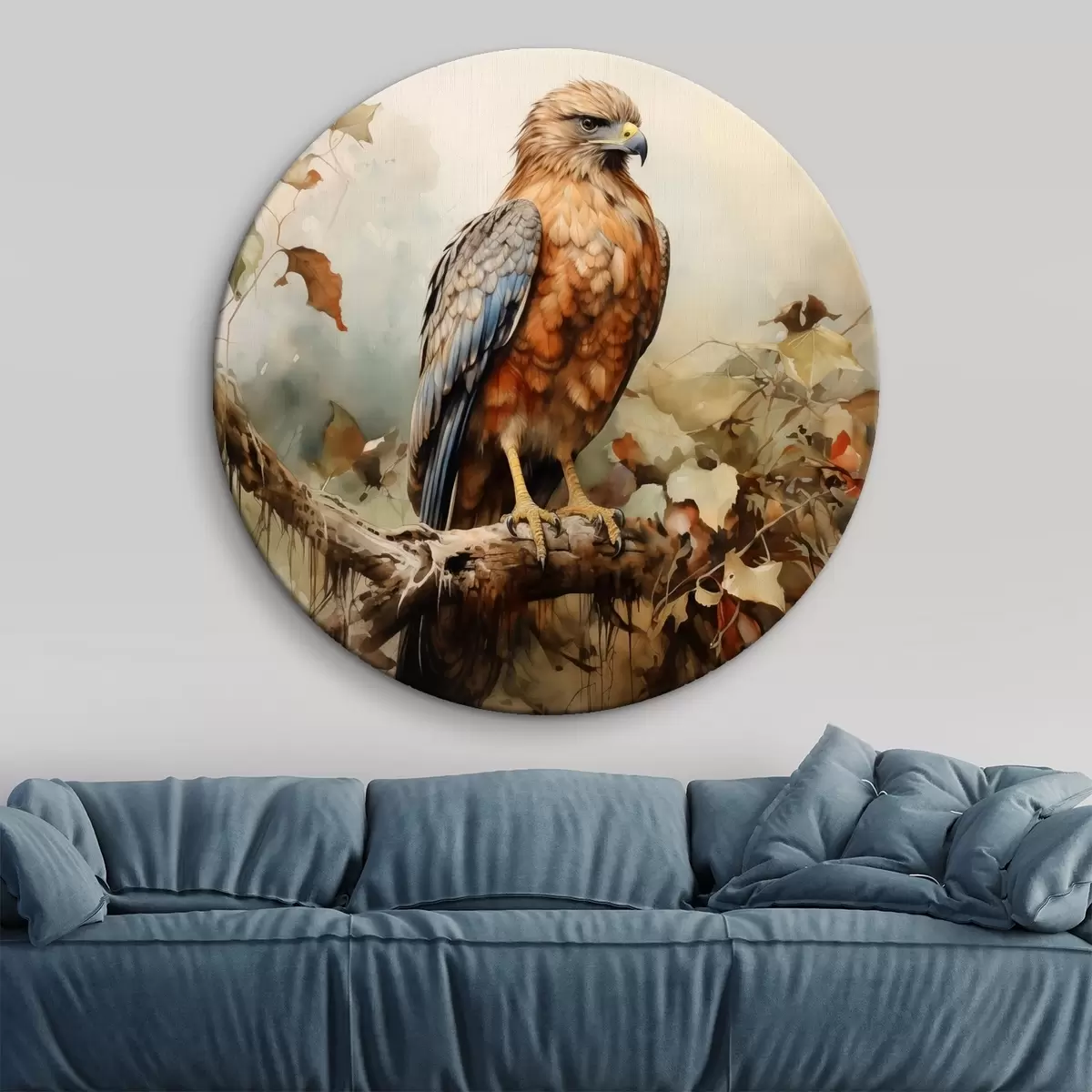 Tableaux rondes Faucon assis sur une branche aquarelle r41021