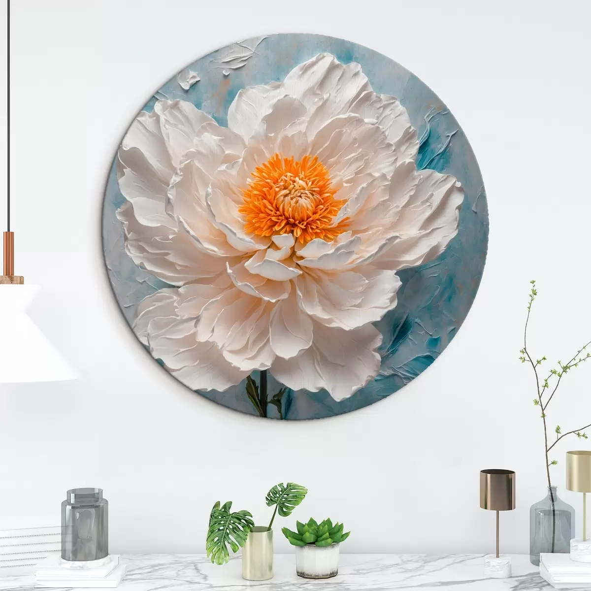 Tableaux rondes Fleur blanche sur fond d'huile r41036