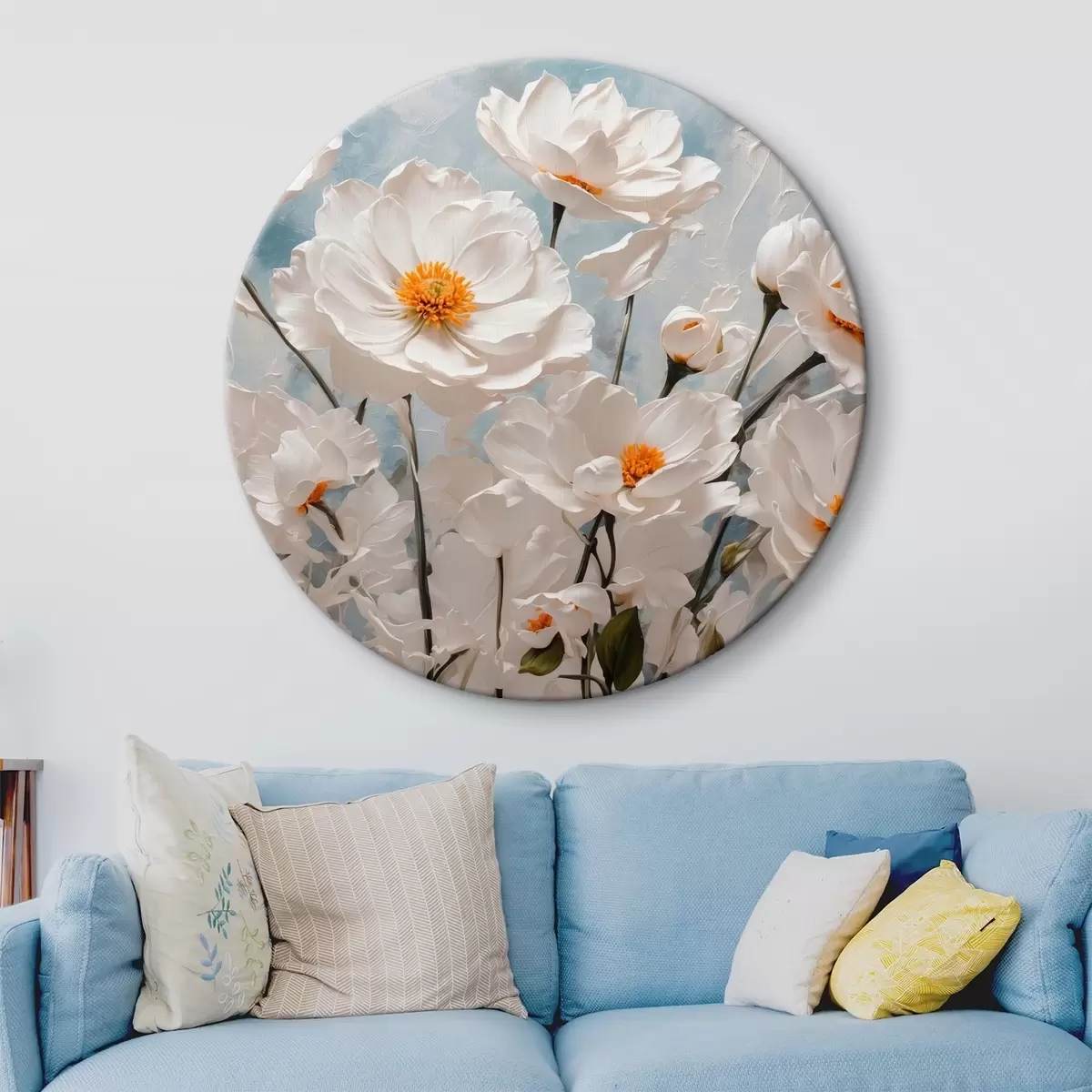 Tableaux rondes Fleurs blanches sur fond d'huile bleu et blanc Nr r41041