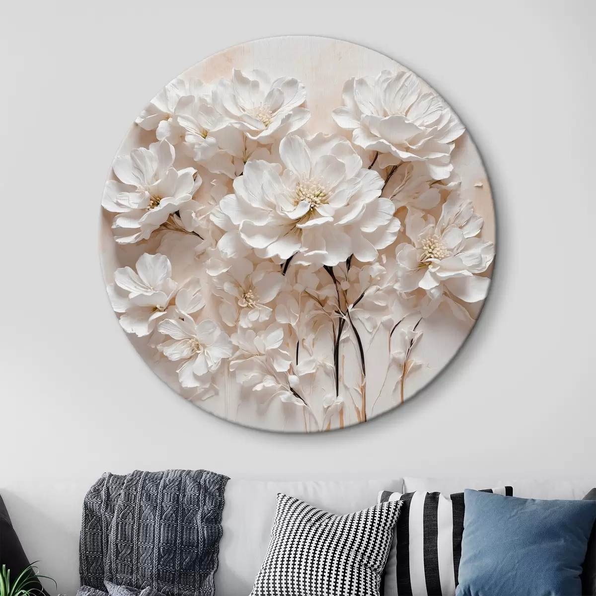 Tableaux rondes Fleurs blanches sur fond blanc et orange Nr r41042