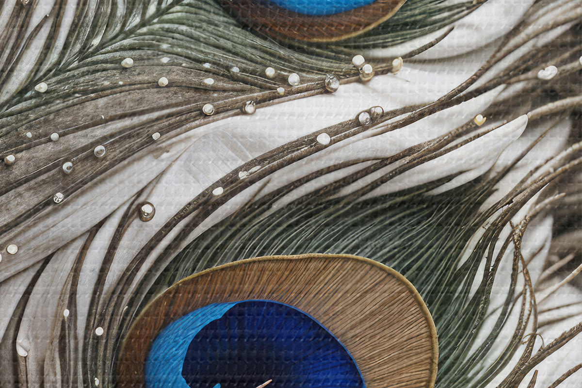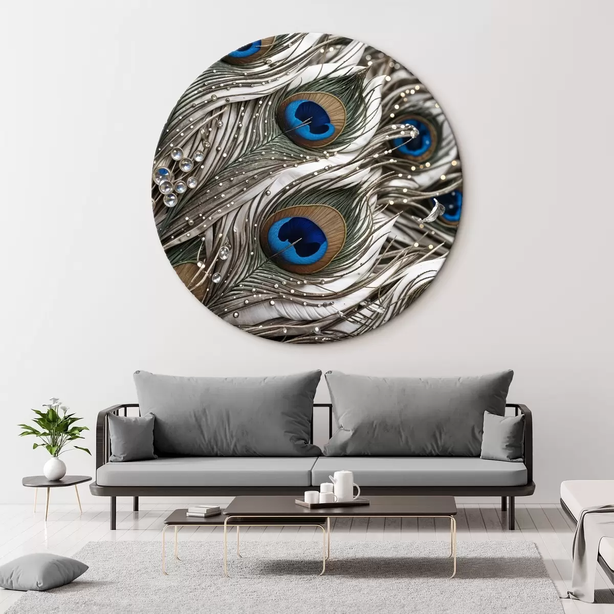 Tableaux rondes Plumes de paon vibrantes avec des motifs complexes et des dessins bleus saisissants r41103