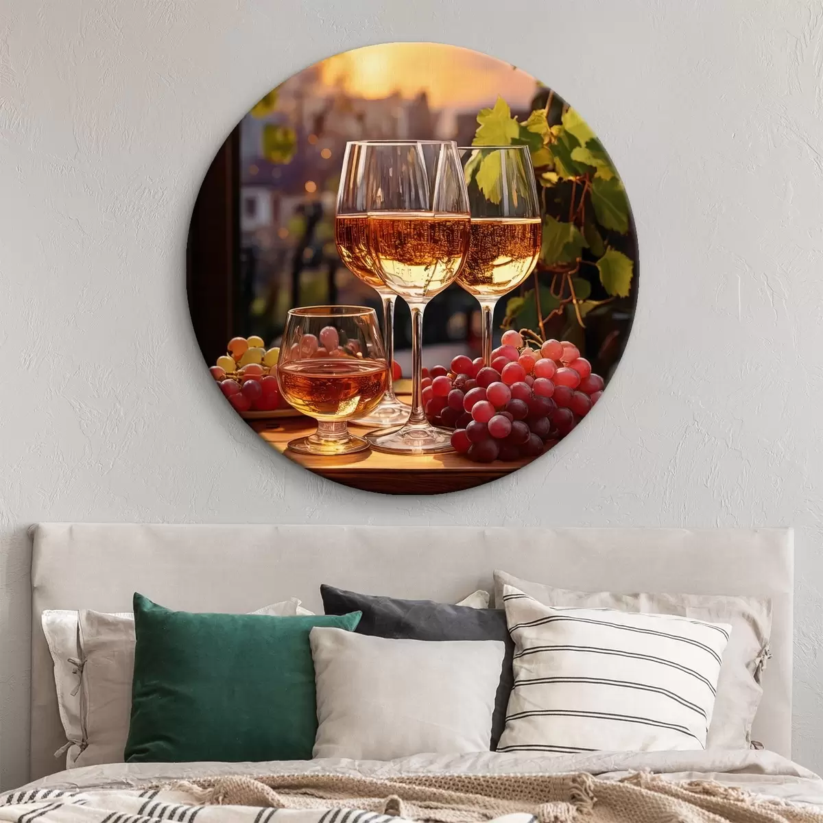 Tableaux rondes verres avec vin, raisins sur la table, nature morte Nr r41104