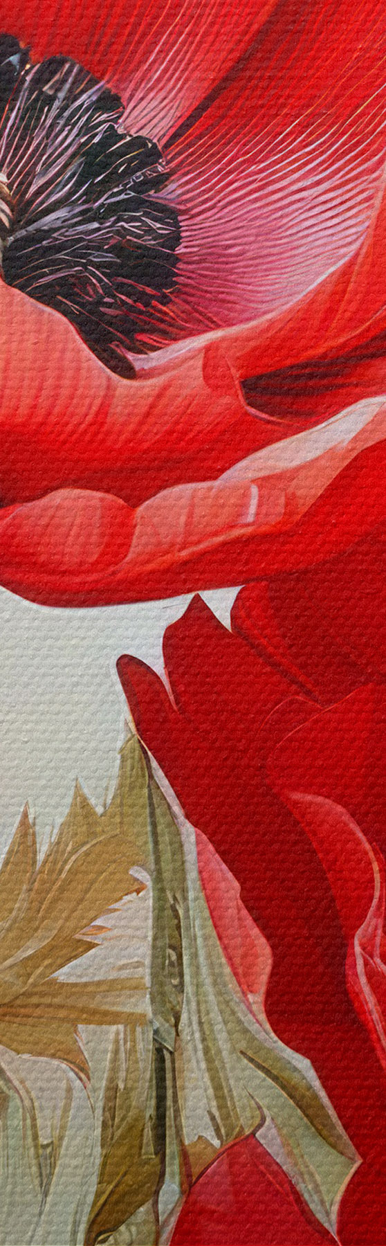 Trois types de matériaux peuvent être commandés : Economic Canvas - matériau dense et durable pour l'impression numérique, identique à la toile de peintre, surface imperméable, reproduction réaliste des détails, matériau à grain moyen. Premium Canvas - la texture ressemble à celle d'une toile de peintre (petits fils entrelacés). Reproduction douce et détaillée de l'image sur une surface mate. Eco-Premium - tissu 100 % coton de haute qualité. Grâce aux fibres naturelles de coton, le matériau est durable et résistant à l'usure. Excellente reproduction des couleurs et des détails.