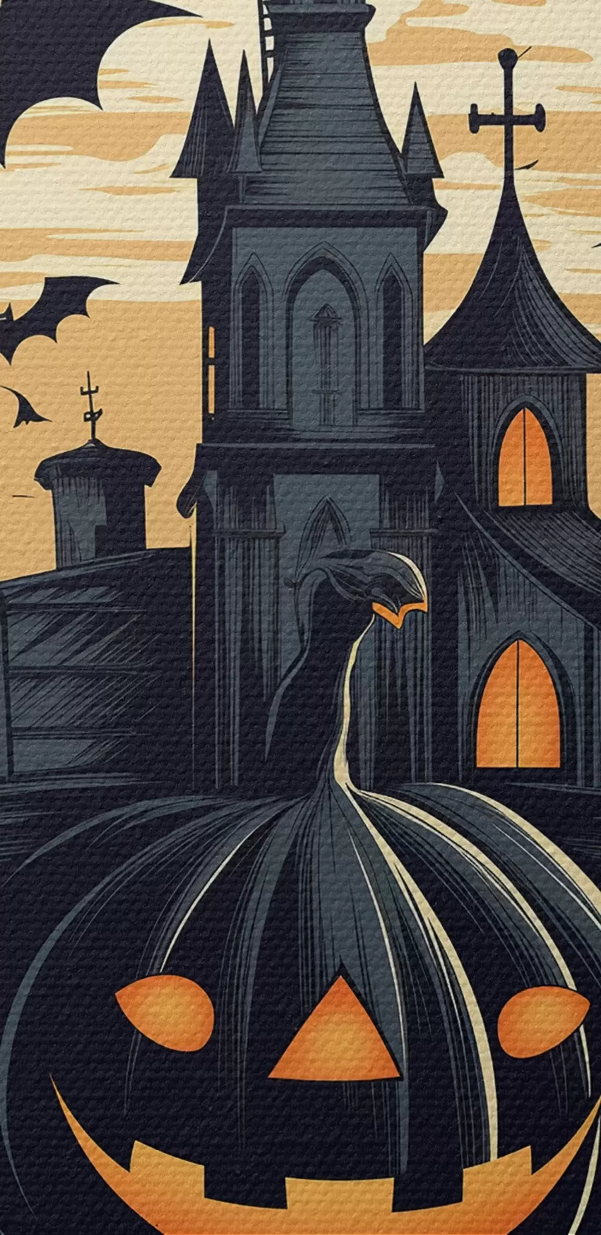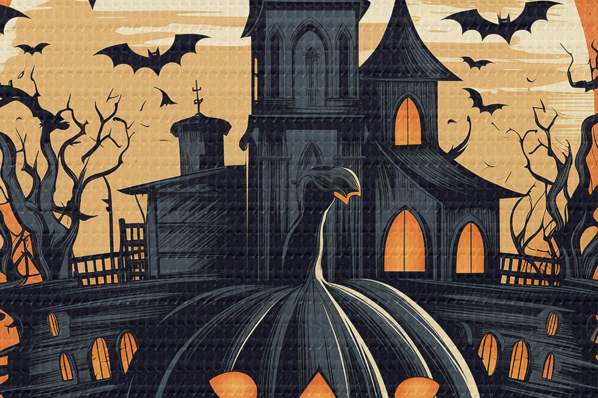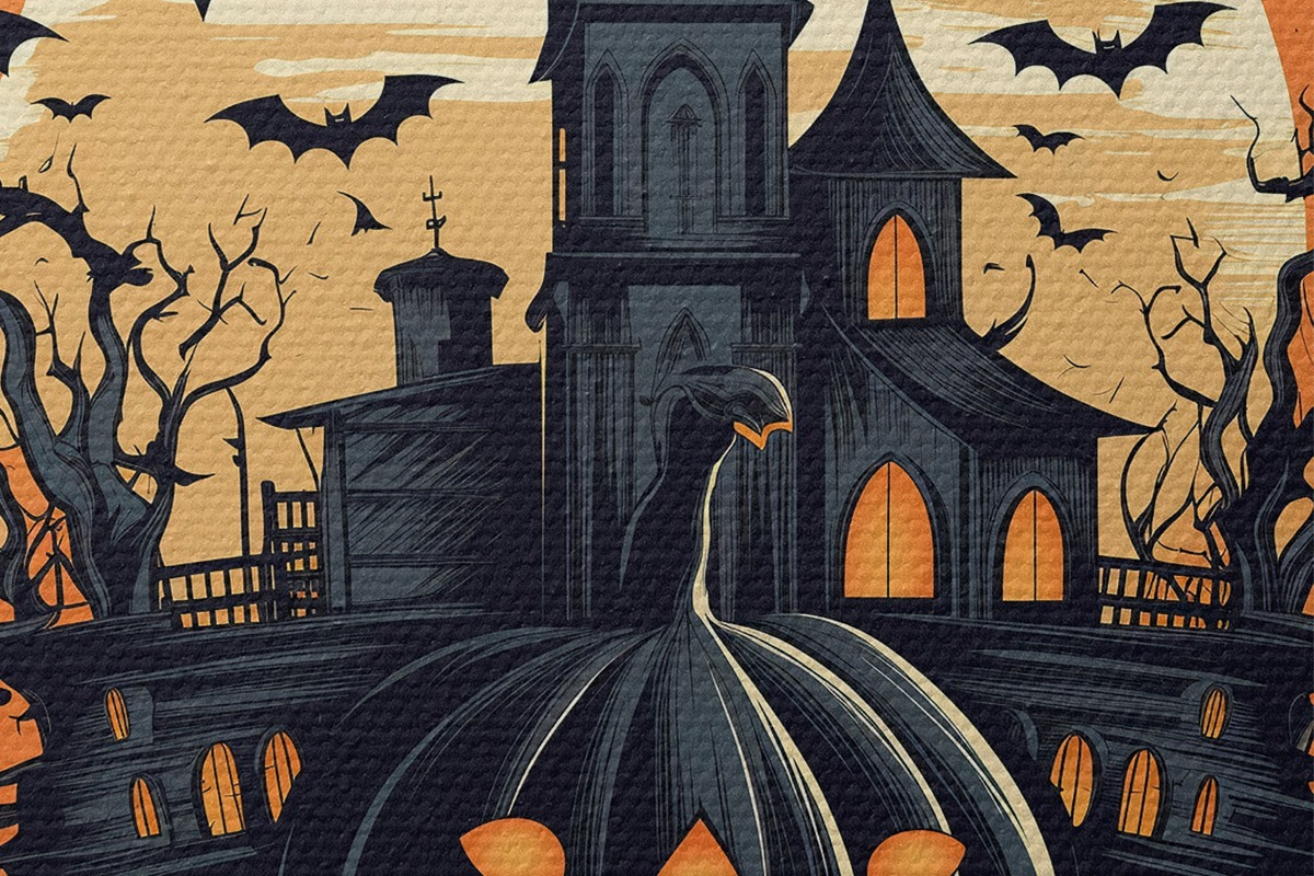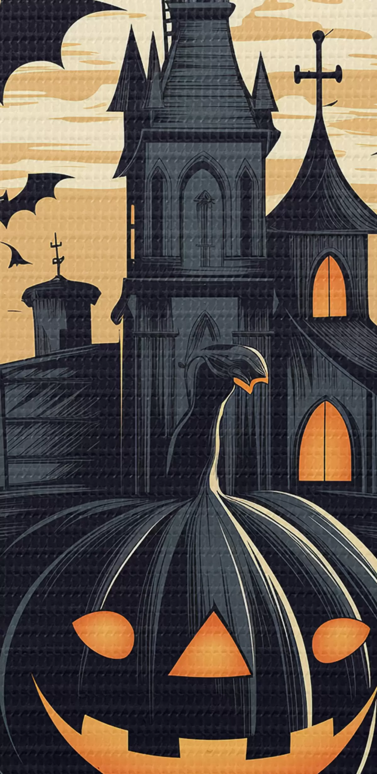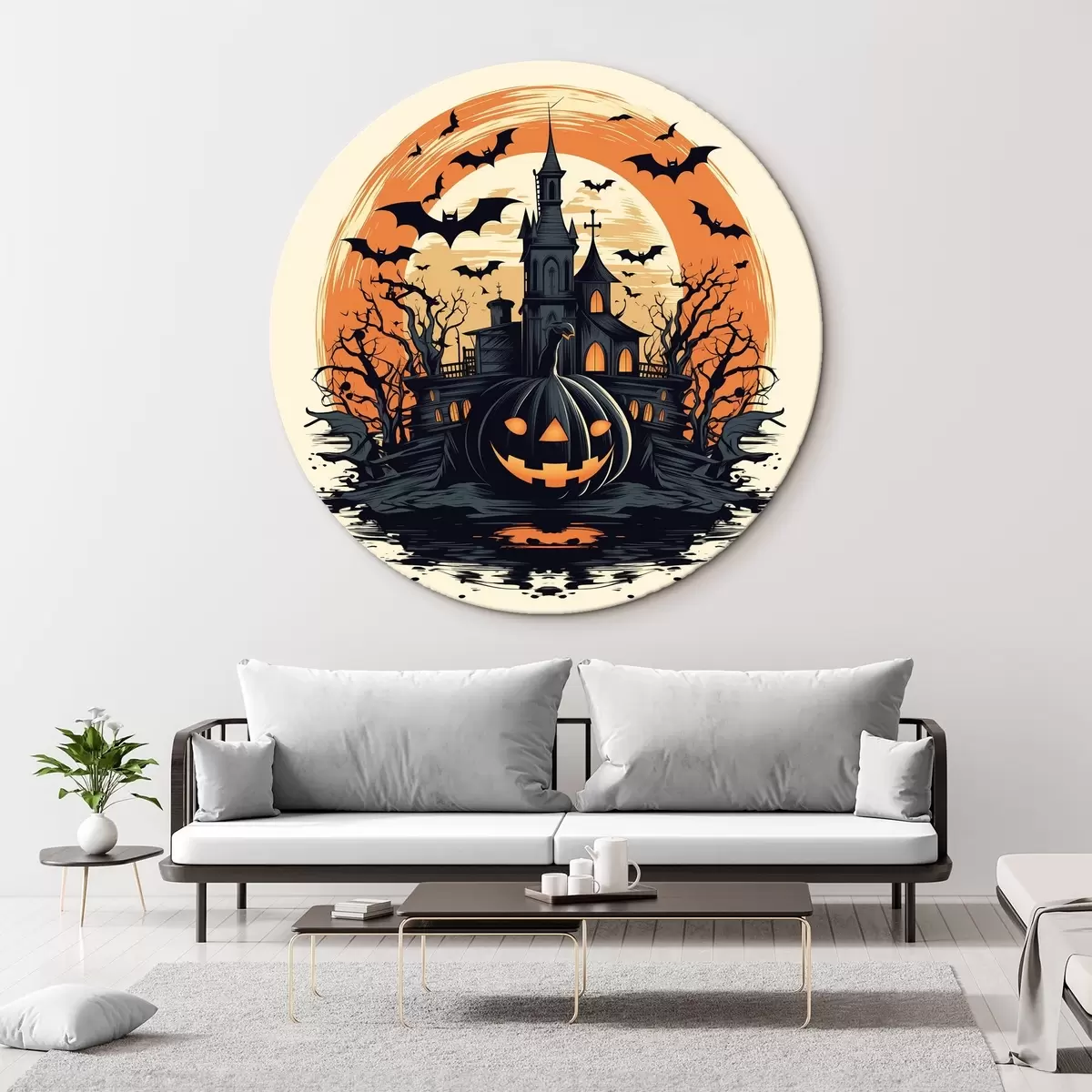 Tableaux rondes Château, chauves-souris et citrouilles r41137