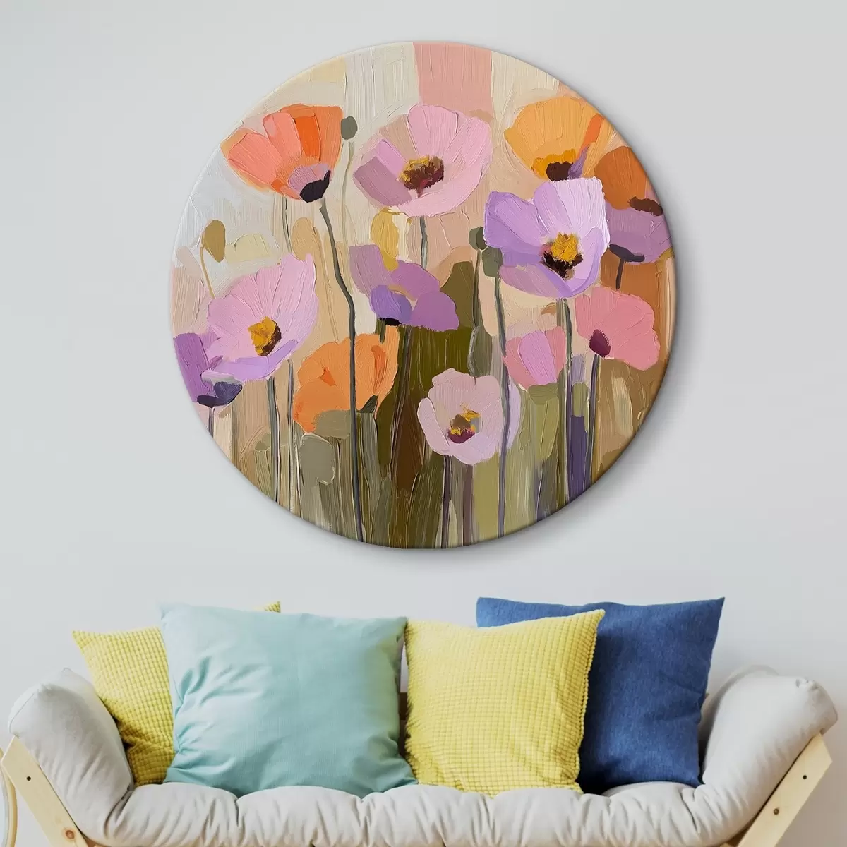 Tableaux rondes Peinture acrylique représentant des coquelicots d'automne Nr r41158