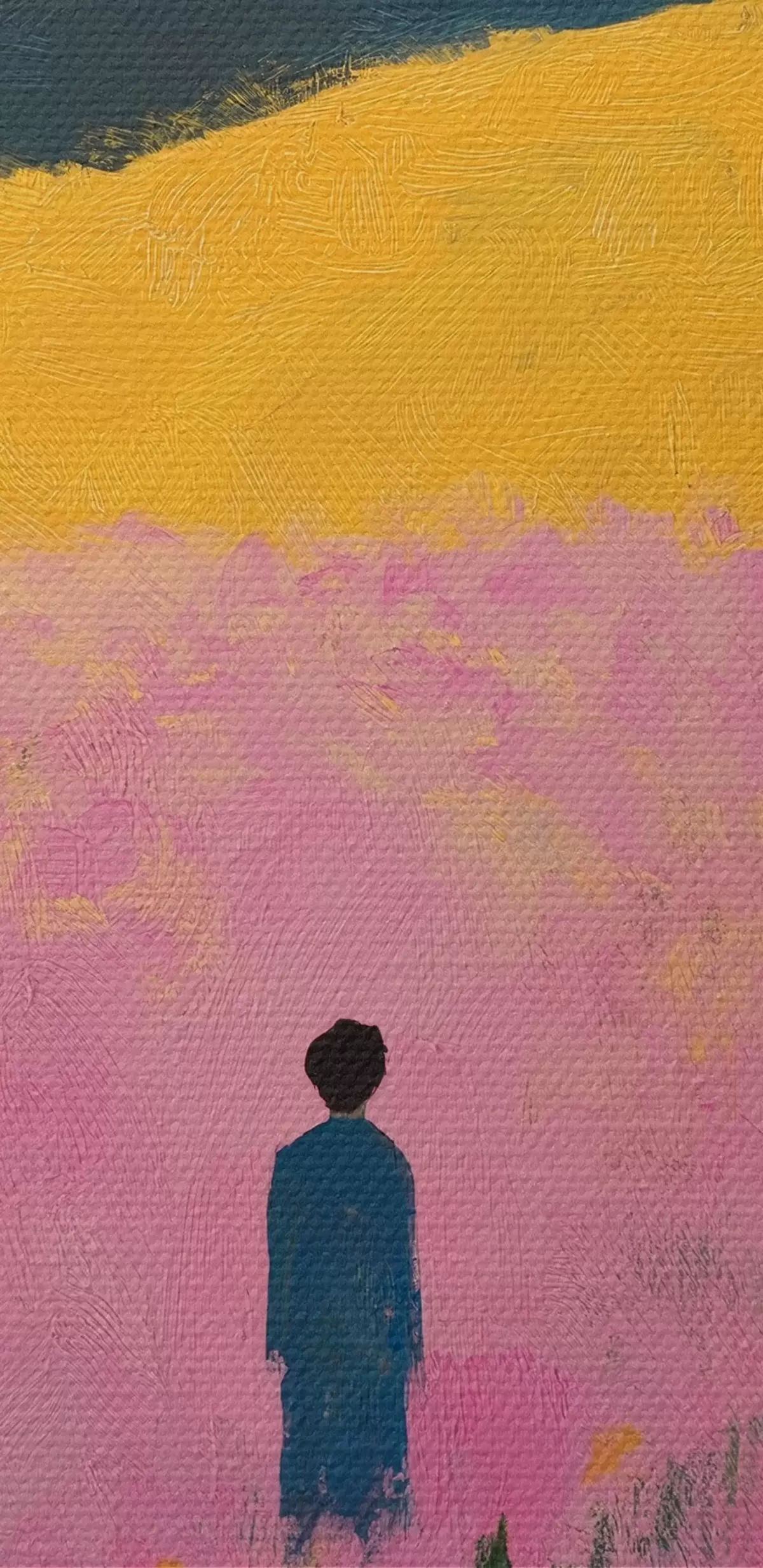 Tableaux rondes Homme dans un champ de fleurs roses r41164