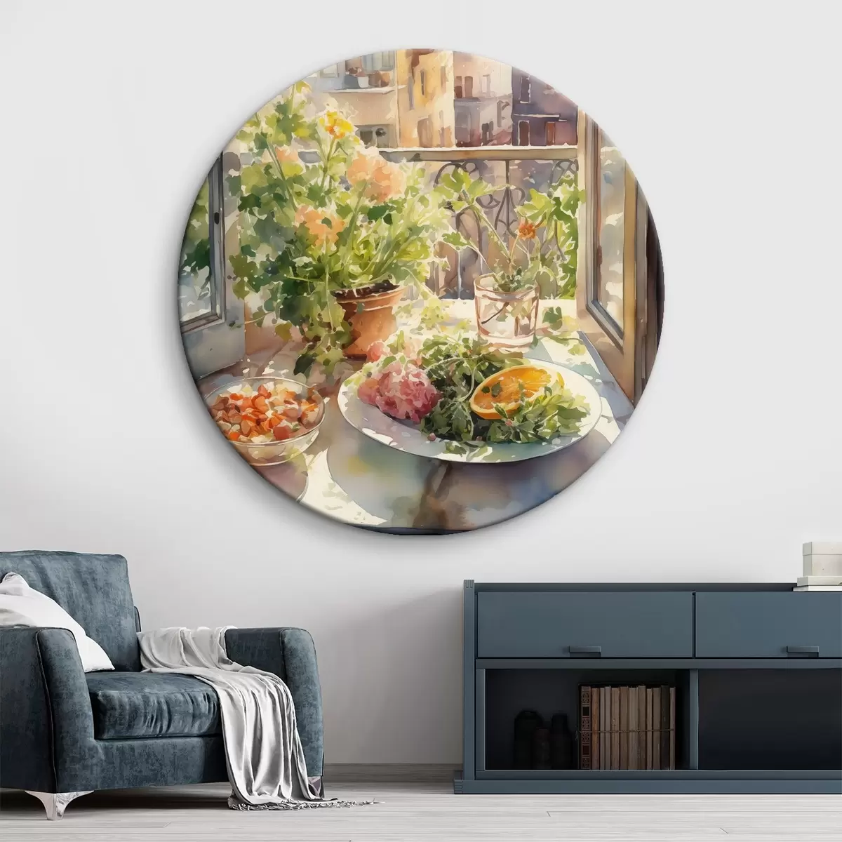 Tableaux rondes Dîner aquarelle, vue de la ville, fleurs, nature, salade verte r41166