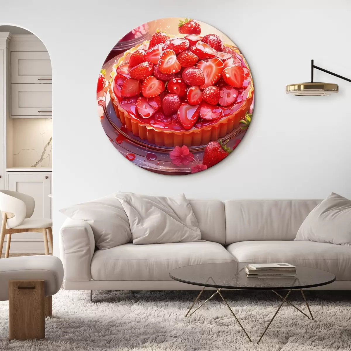 Tableaux rondes Gâteau aux fraises, aquarelle, désert sucré, lumière chaude du soleil r41178