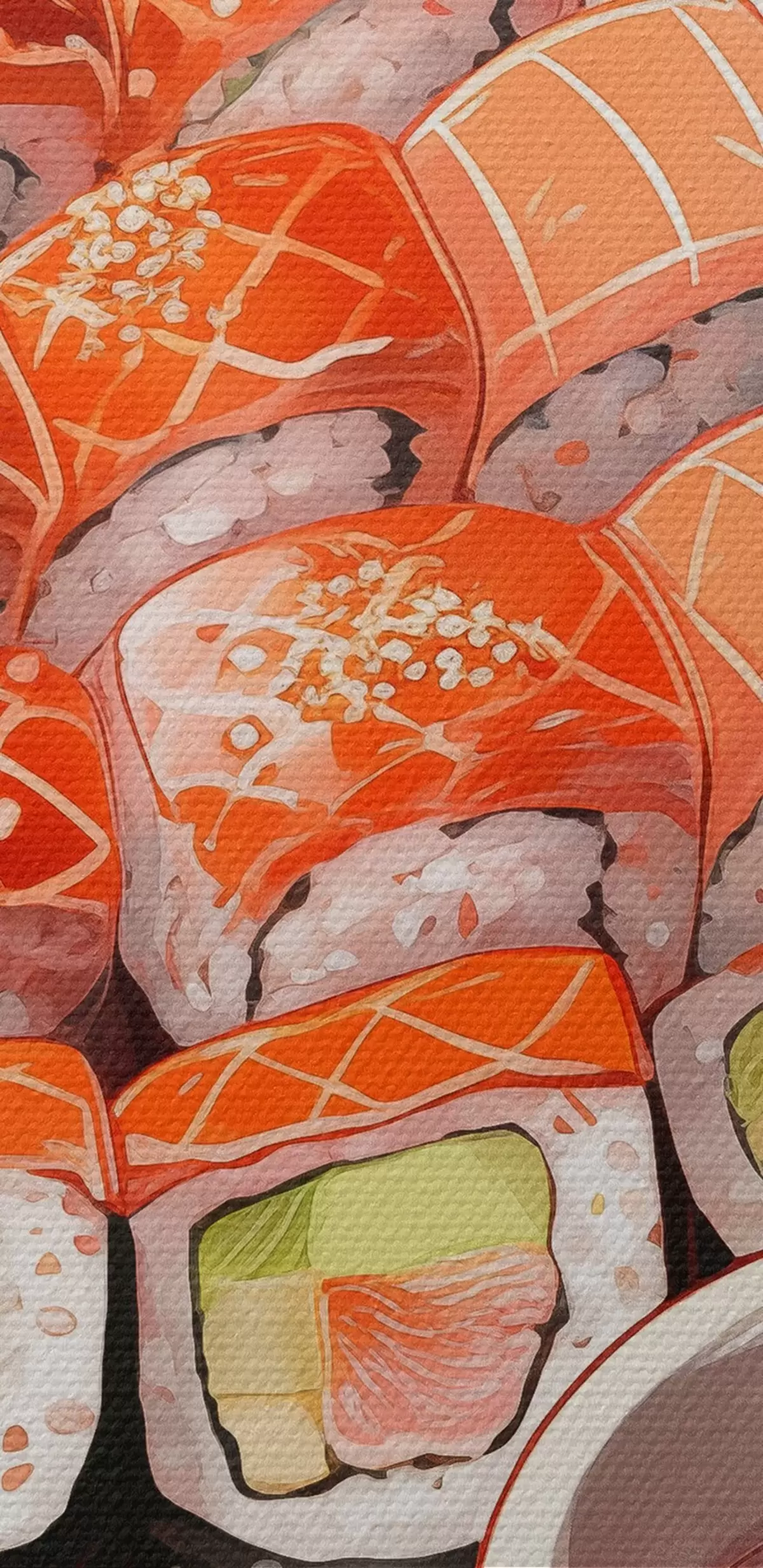 Tableaux rondes Aquarelle assiette de sushi, saumon, délicieux r41180