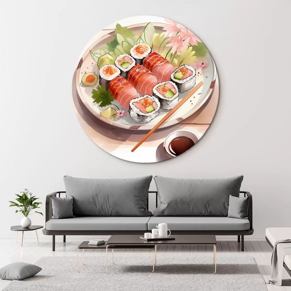 Tableaux rondes Aquarelle sushi, floral, japonais r41181