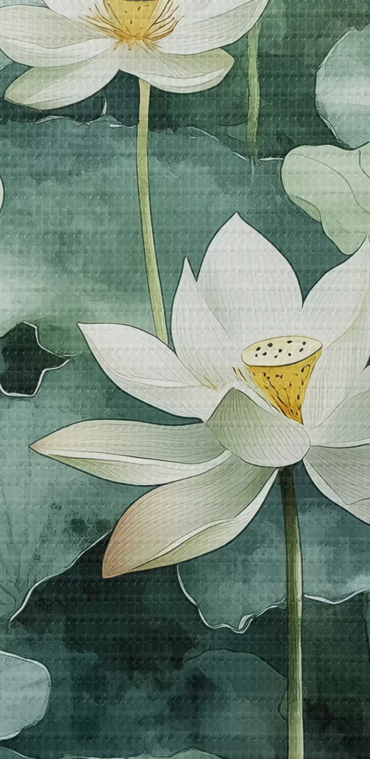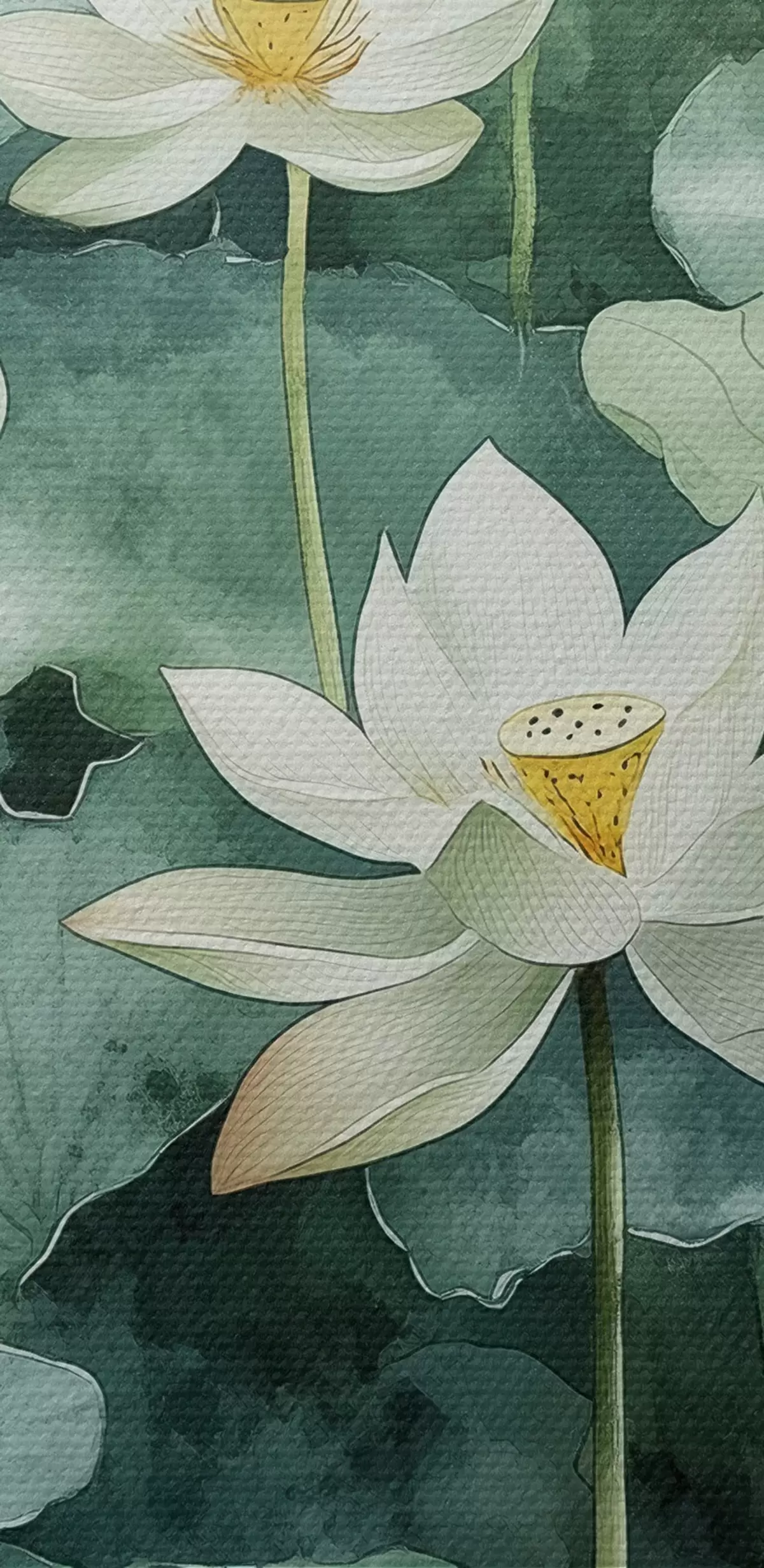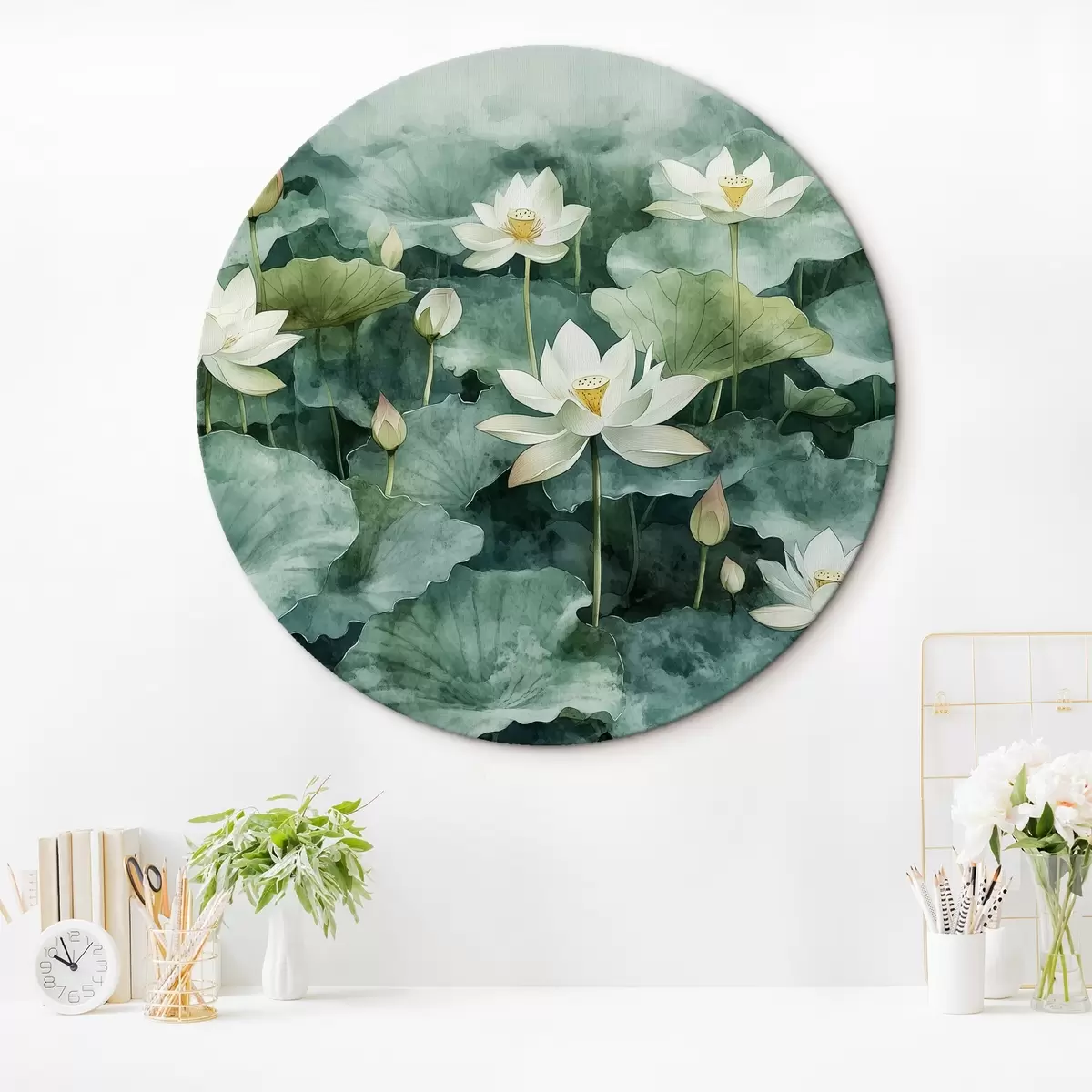 Tableaux rondes Lotus dans l'étang, aquarelle, vert Nr r41228