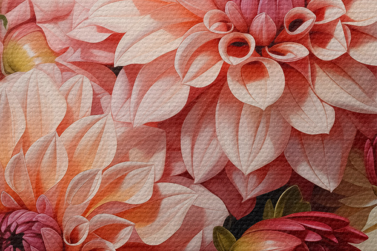 Trois types de matériaux peuvent être commandés : Economic Canvas - matériau dense et durable pour l'impression numérique, identique à la toile de peintre, surface imperméable, reproduction réaliste des détails, matériau à grain moyen. Premium Canvas - la texture ressemble à celle d'une toile de peintre (petits fils entrelacés). Reproduction douce et détaillée de l'image sur une surface mate. Eco-Premium - tissu 100 % coton de haute qualité. Grâce aux fibres naturelles de coton, le matériau est durable et résistant à l'usure. Excellente reproduction des couleurs et des détails.