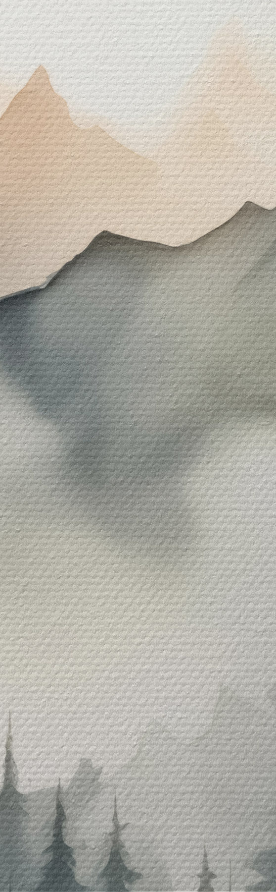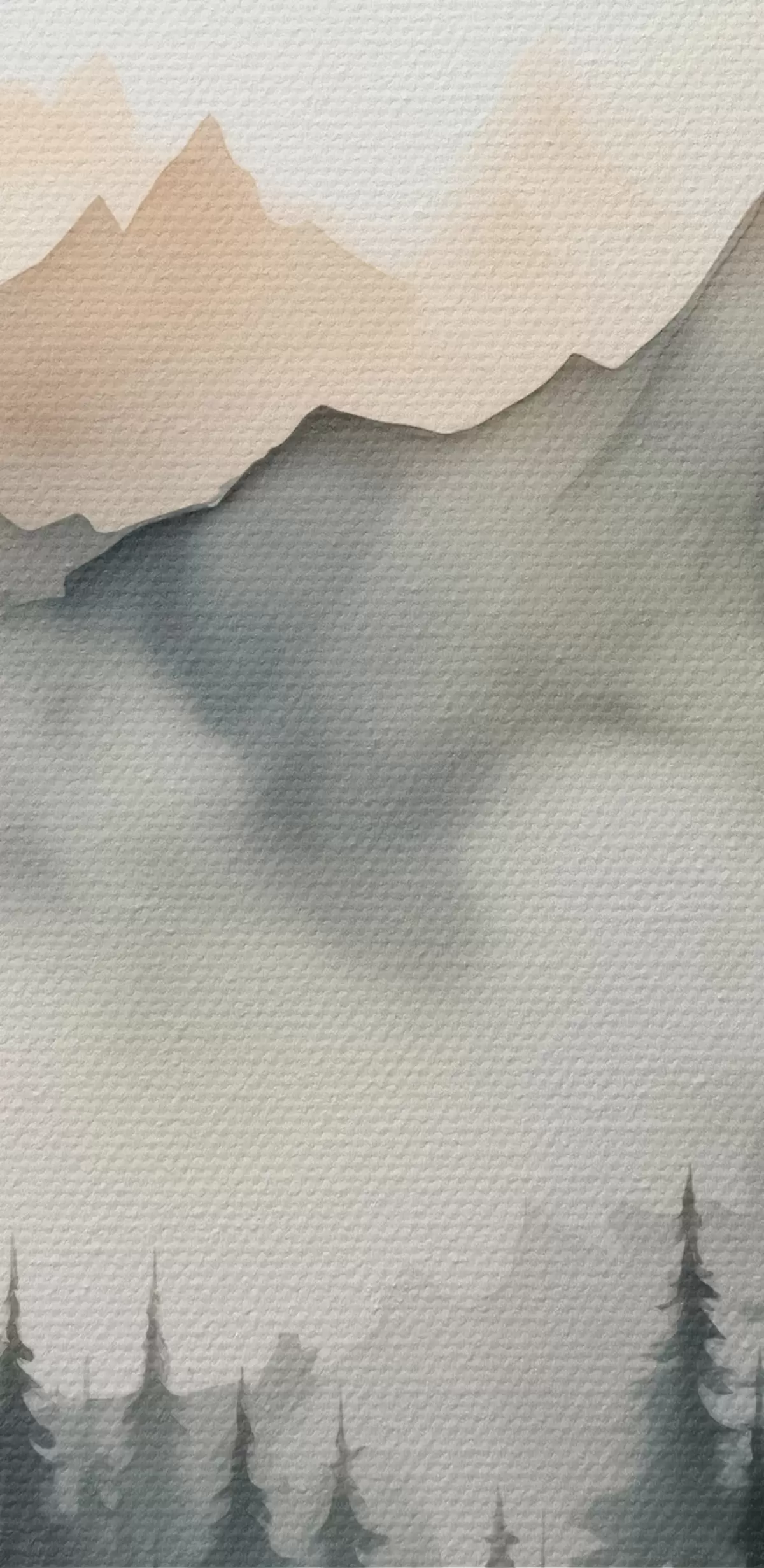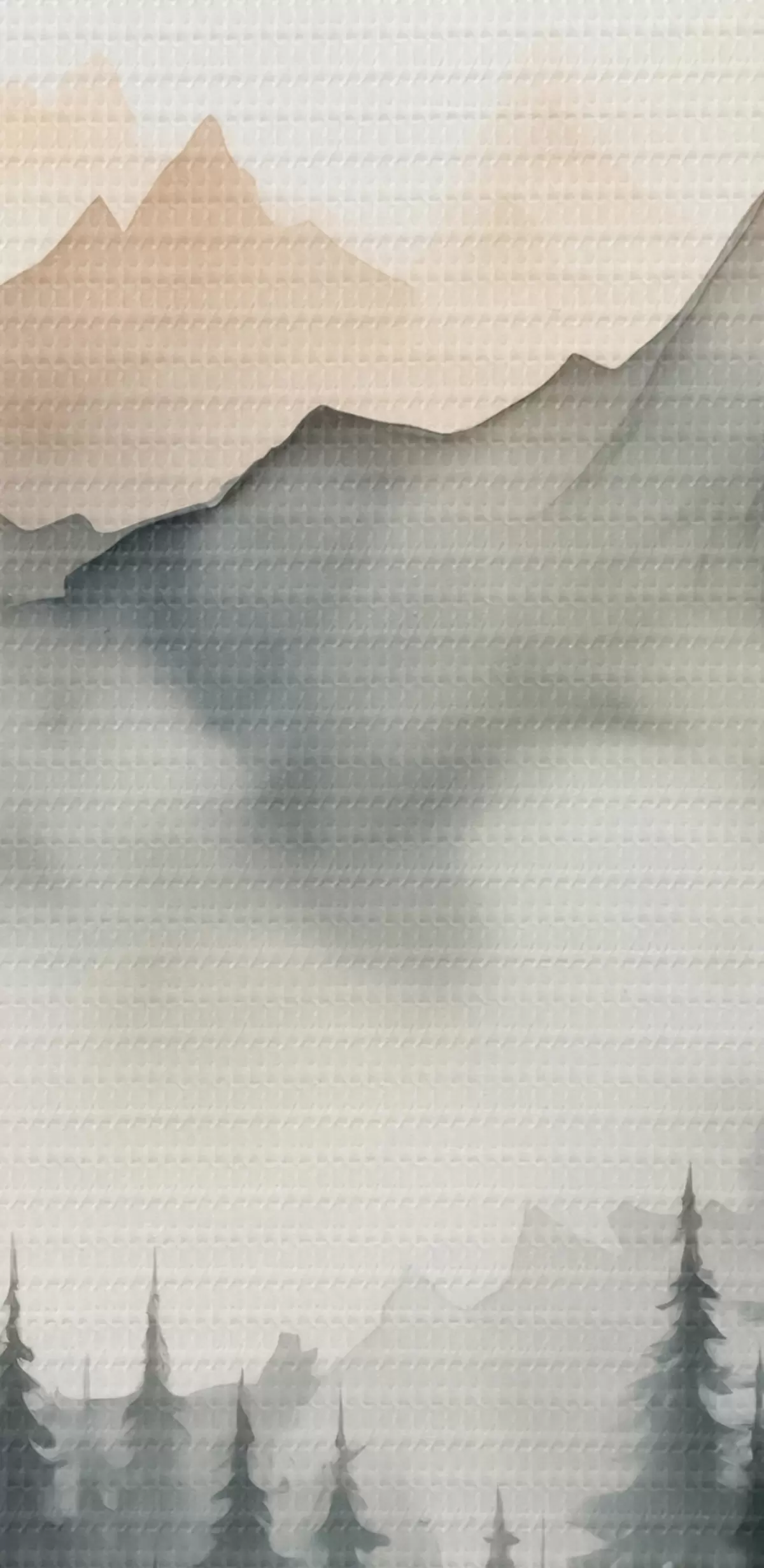 Tableaux rondes Forêt sur fond d'aquarelle de montagnes Nr r41240