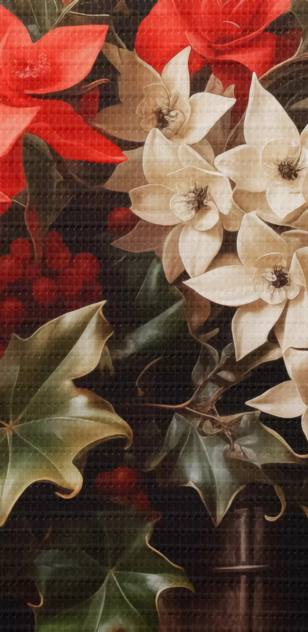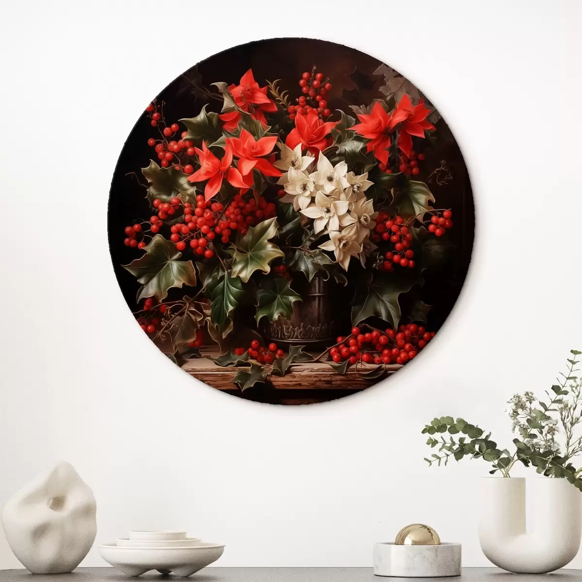 Tableaux rondes Bouquet de houx et de fleurs de Noël sur fond sombre Nr r41272
