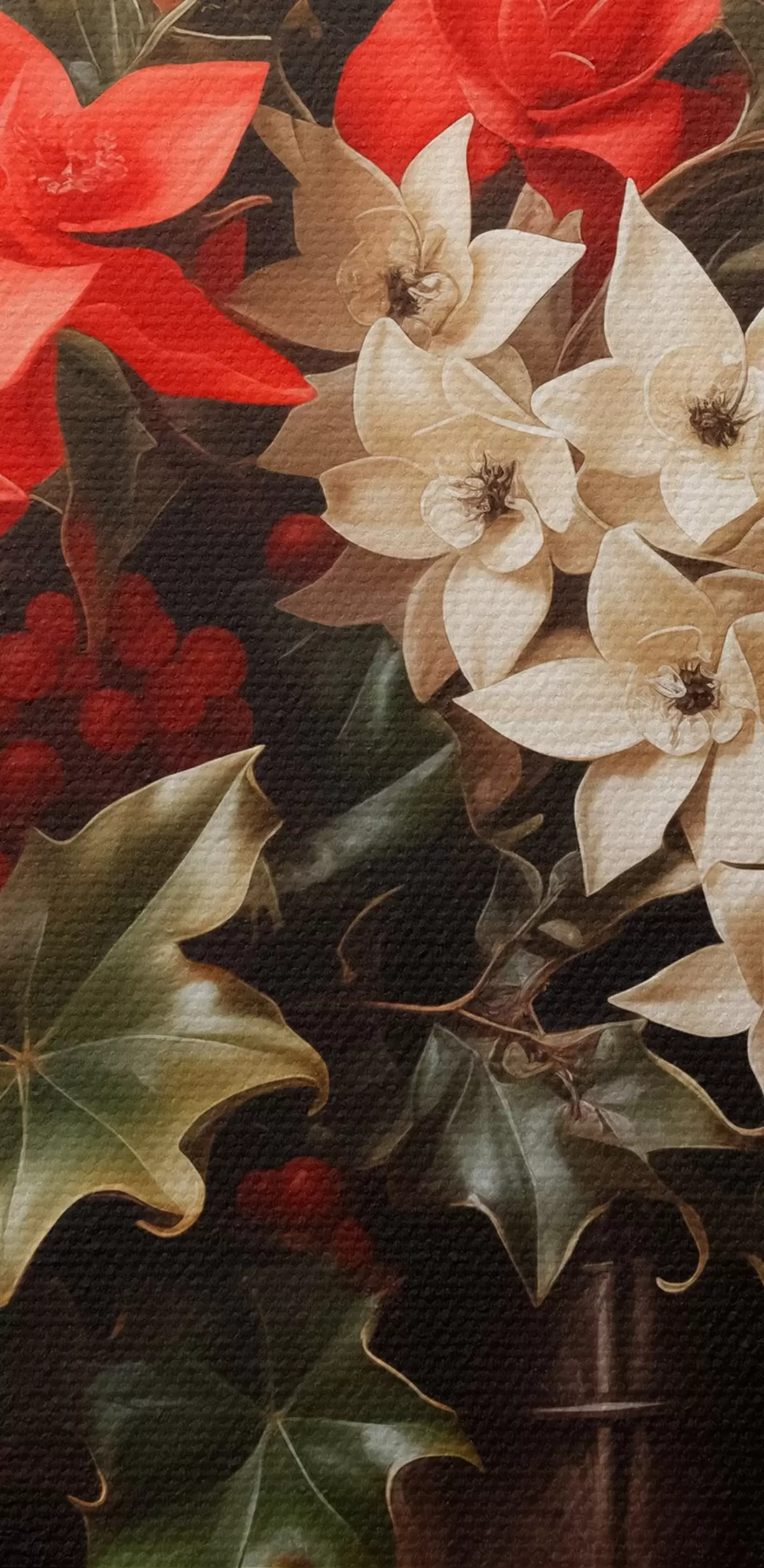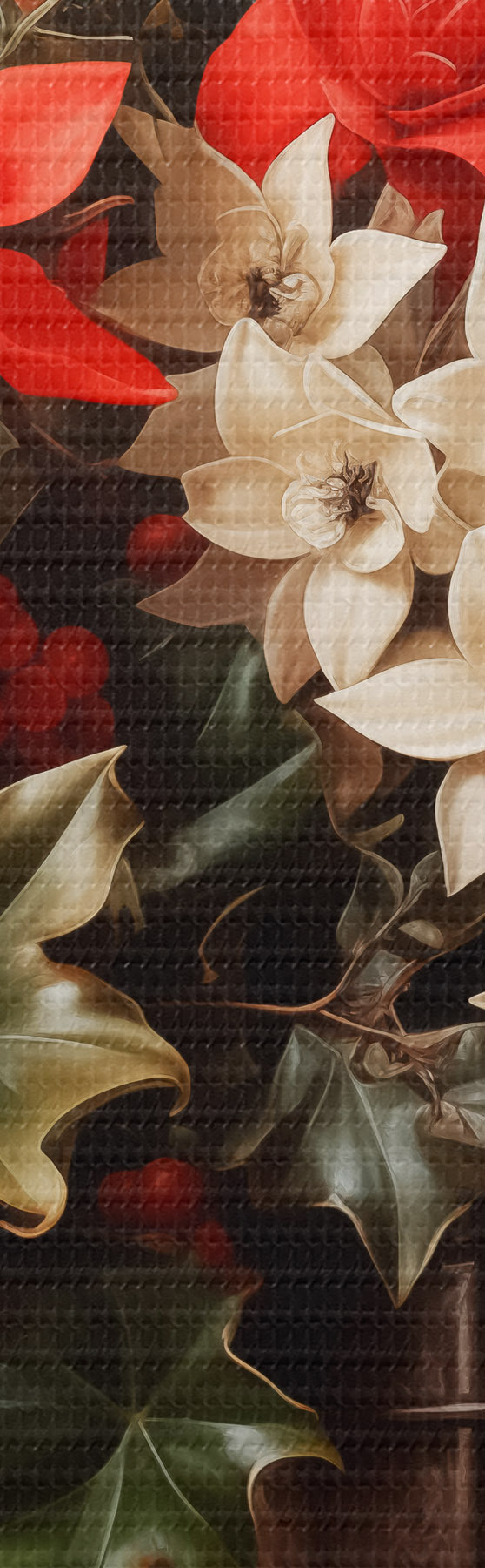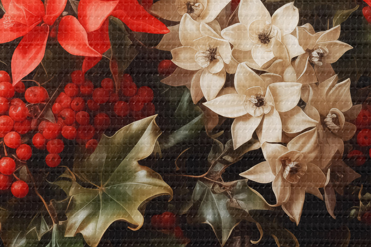 Tableaux rondes Bouquet de houx et de fleurs de Noël sur fond sombre r41272