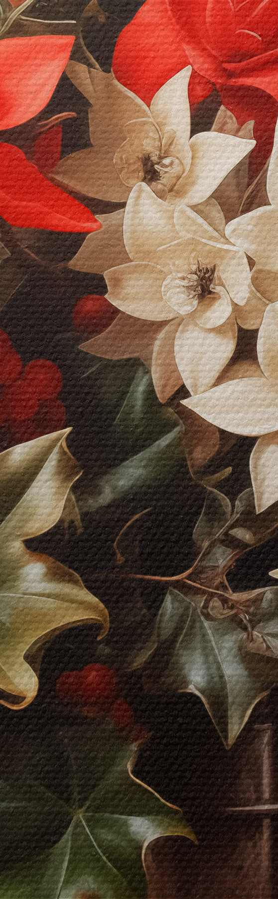 Trois types de matériaux peuvent être commandés : Economic Canvas - matériau dense et durable pour l'impression numérique, identique à la toile de peintre, surface imperméable, reproduction réaliste des détails, matériau à grain moyen. Premium Canvas - la texture ressemble à celle d'une toile de peintre (petits fils entrelacés). Reproduction douce et détaillée de l'image sur une surface mate. Eco-Premium - tissu 100 % coton de haute qualité. Grâce aux fibres naturelles de coton, le matériau est durable et résistant à l'usure. Excellente reproduction des couleurs et des détails.
