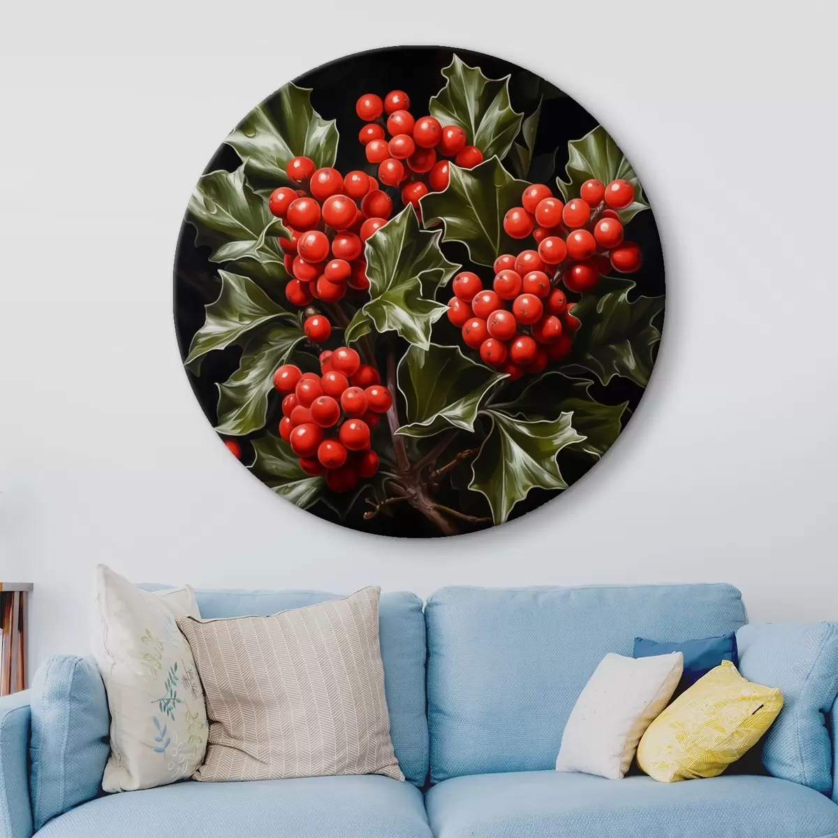 Tableaux rondes Baies et feuilles de houx sur fond sombre Nr r41273