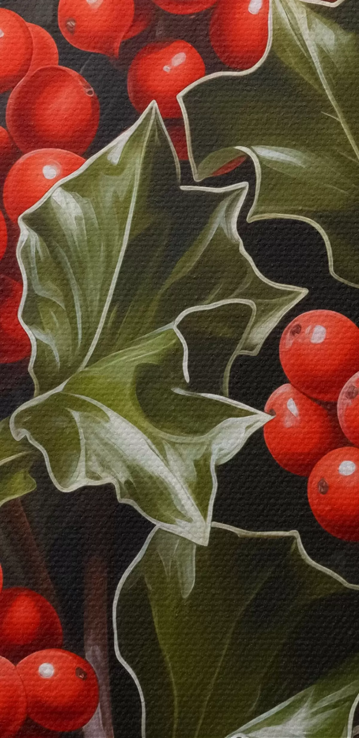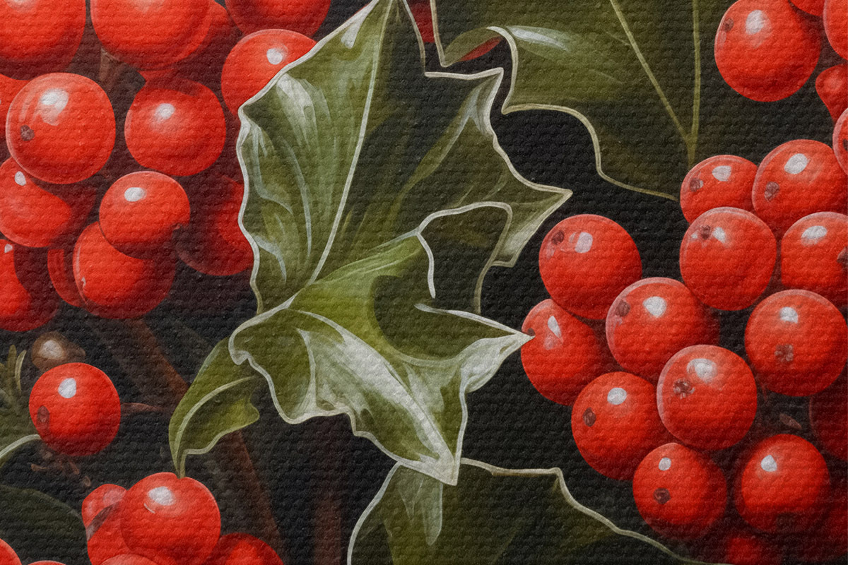 Tableaux rondes Baies et feuilles de houx sur fond sombre r41273