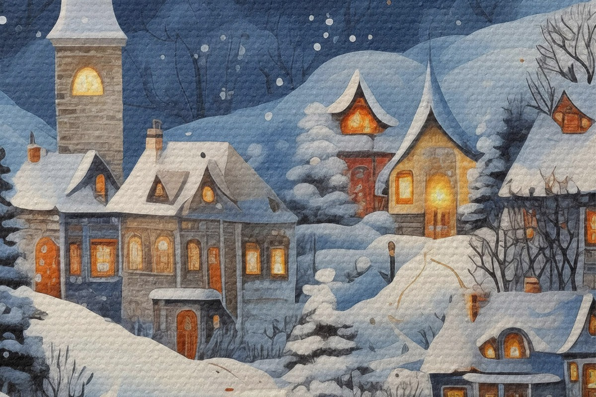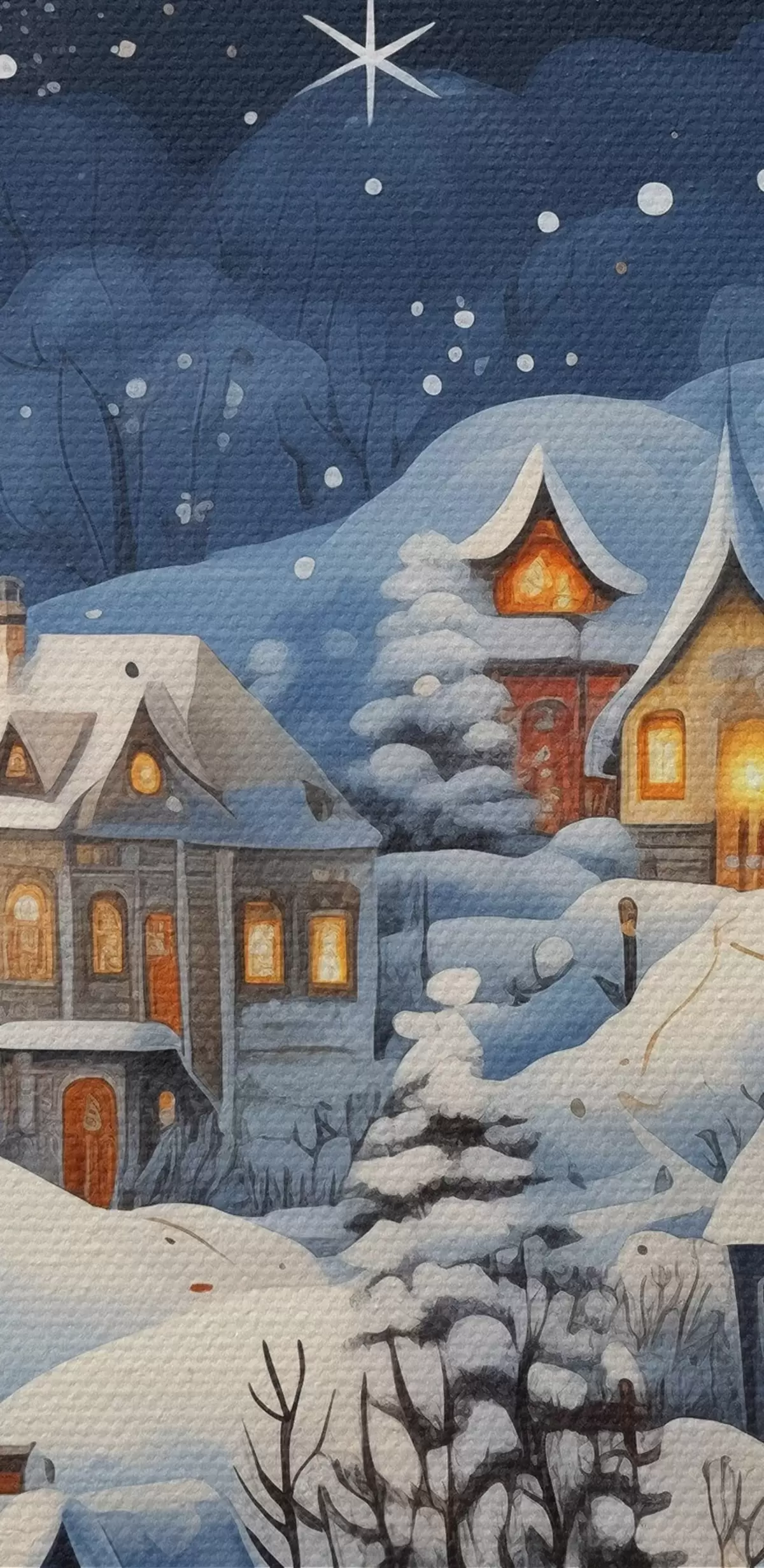 Tableaux rondes Paysage d'hiver avec maisons de campagne enneigées sur fond de ciel nocturne étoilé r41275