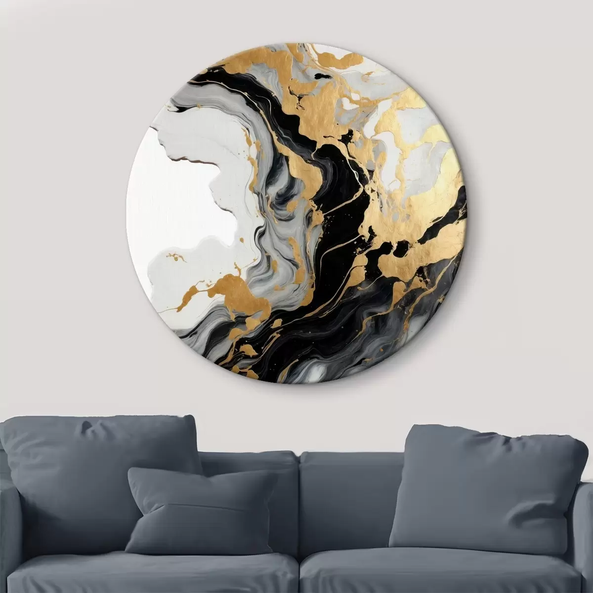 Tableaux rondes Peinture abstraite à l'aquarelle avec des peintures noires et jaunes Nr r41290