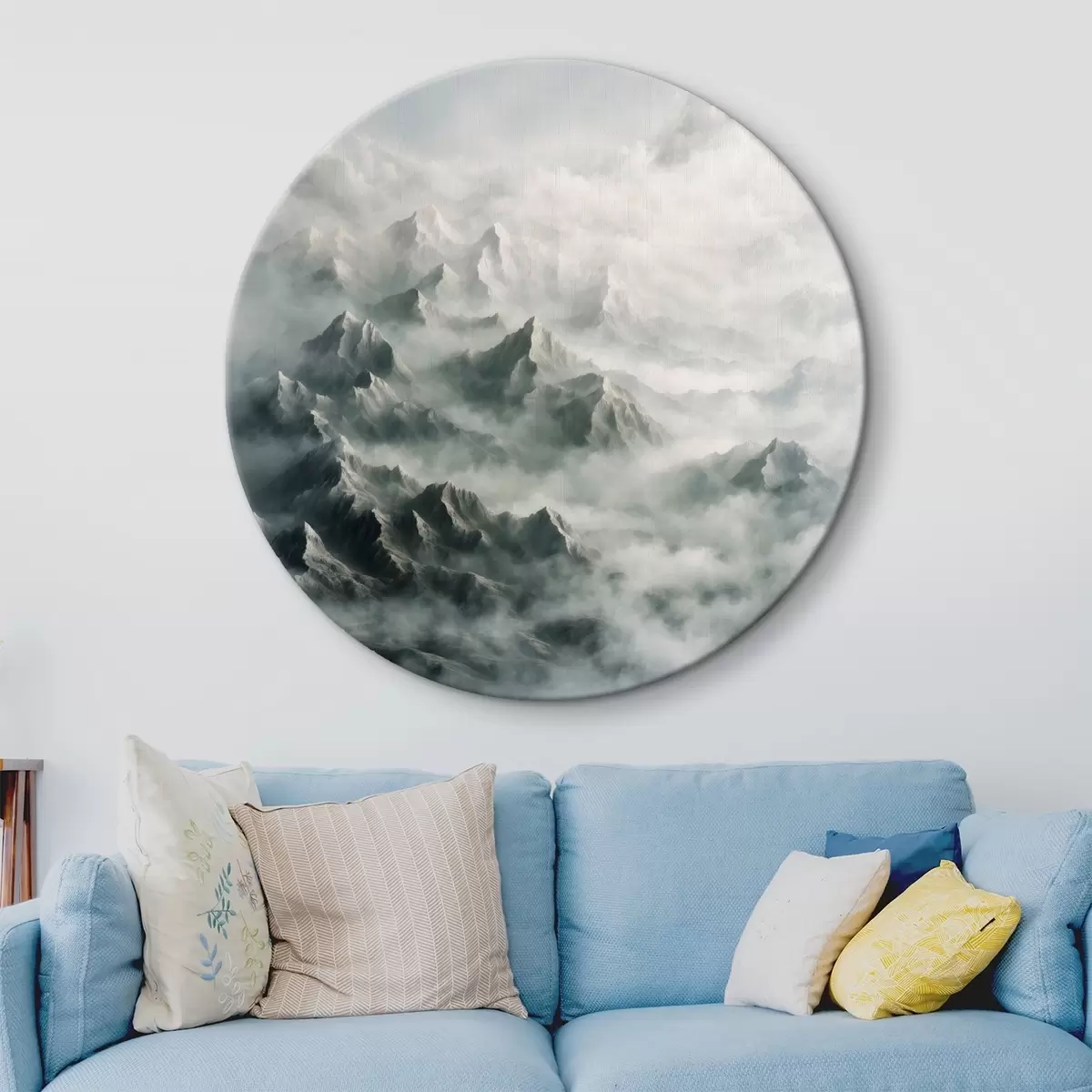 Tableaux rondes Montagnes enneigées dans le brouillard Nr r41301