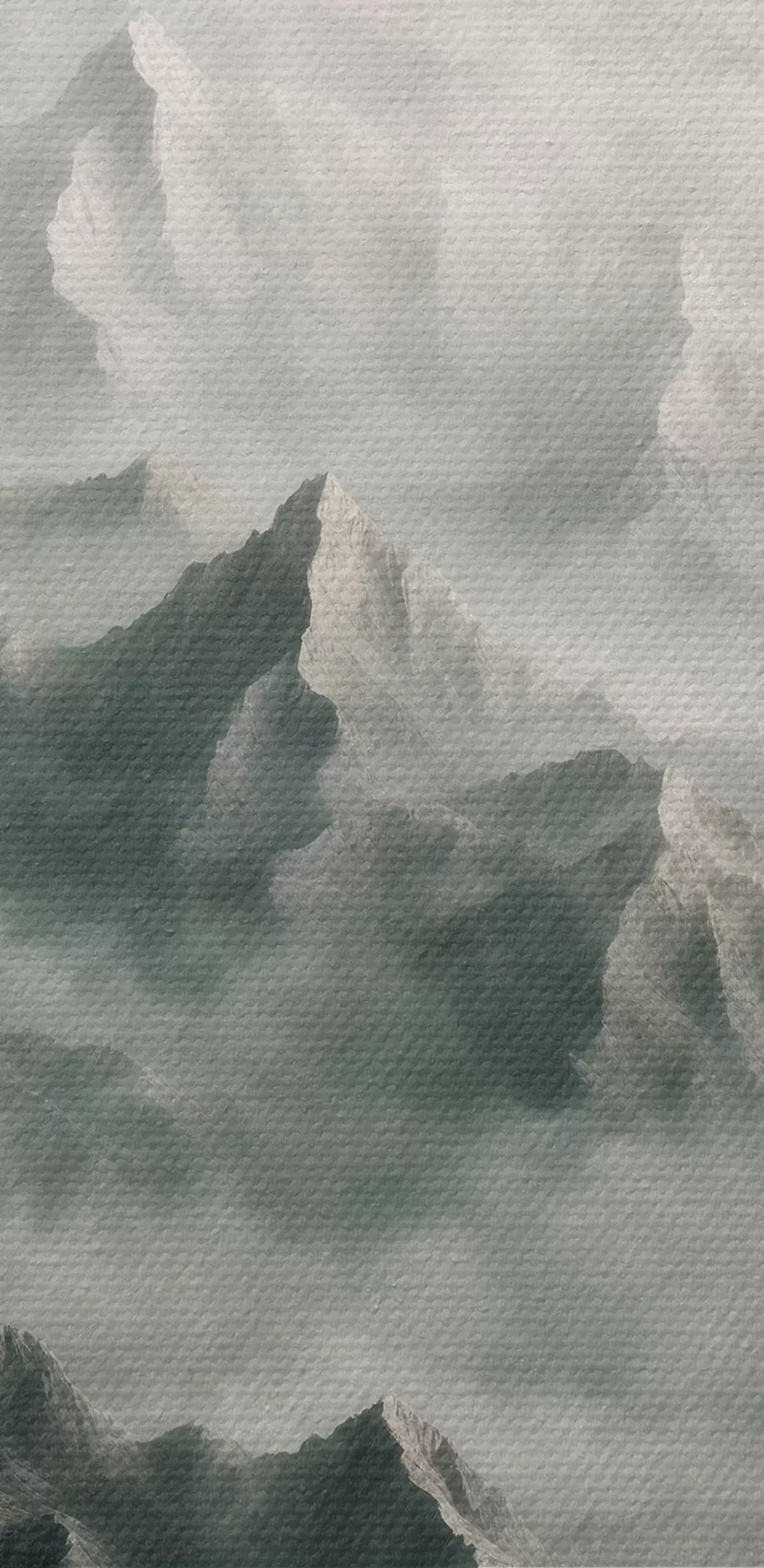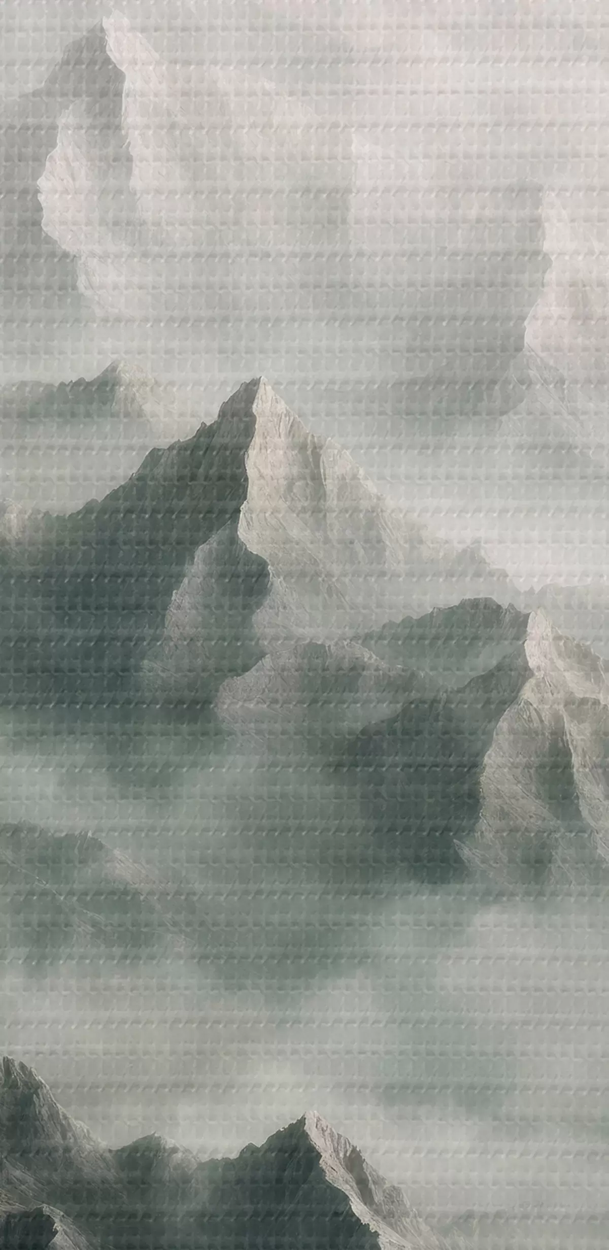 Tableaux rondes Montagnes enneigées dans le brouillard r41301