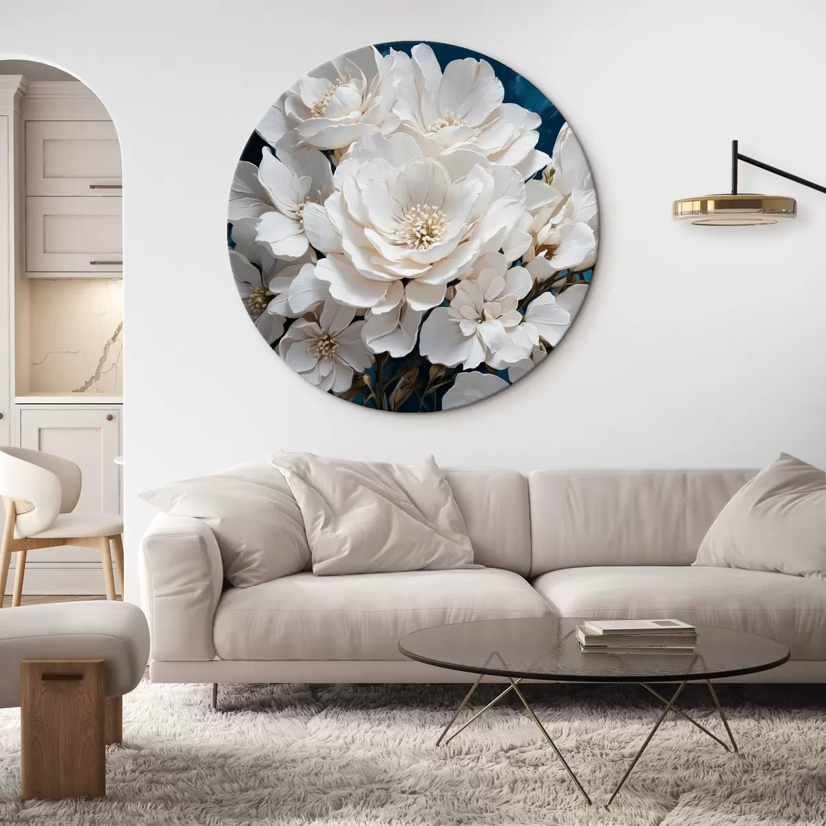 Tableaux rondes Fleurs blanches sur fond acrylique Nr r41314