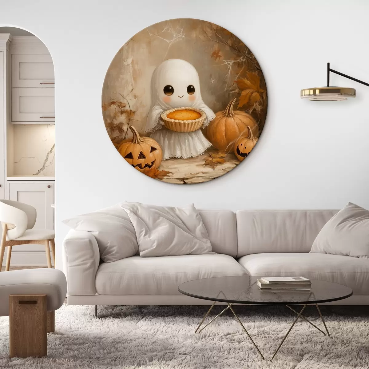 Tableaux rondes Fantôme tenant une tarte à la citrouille r41340