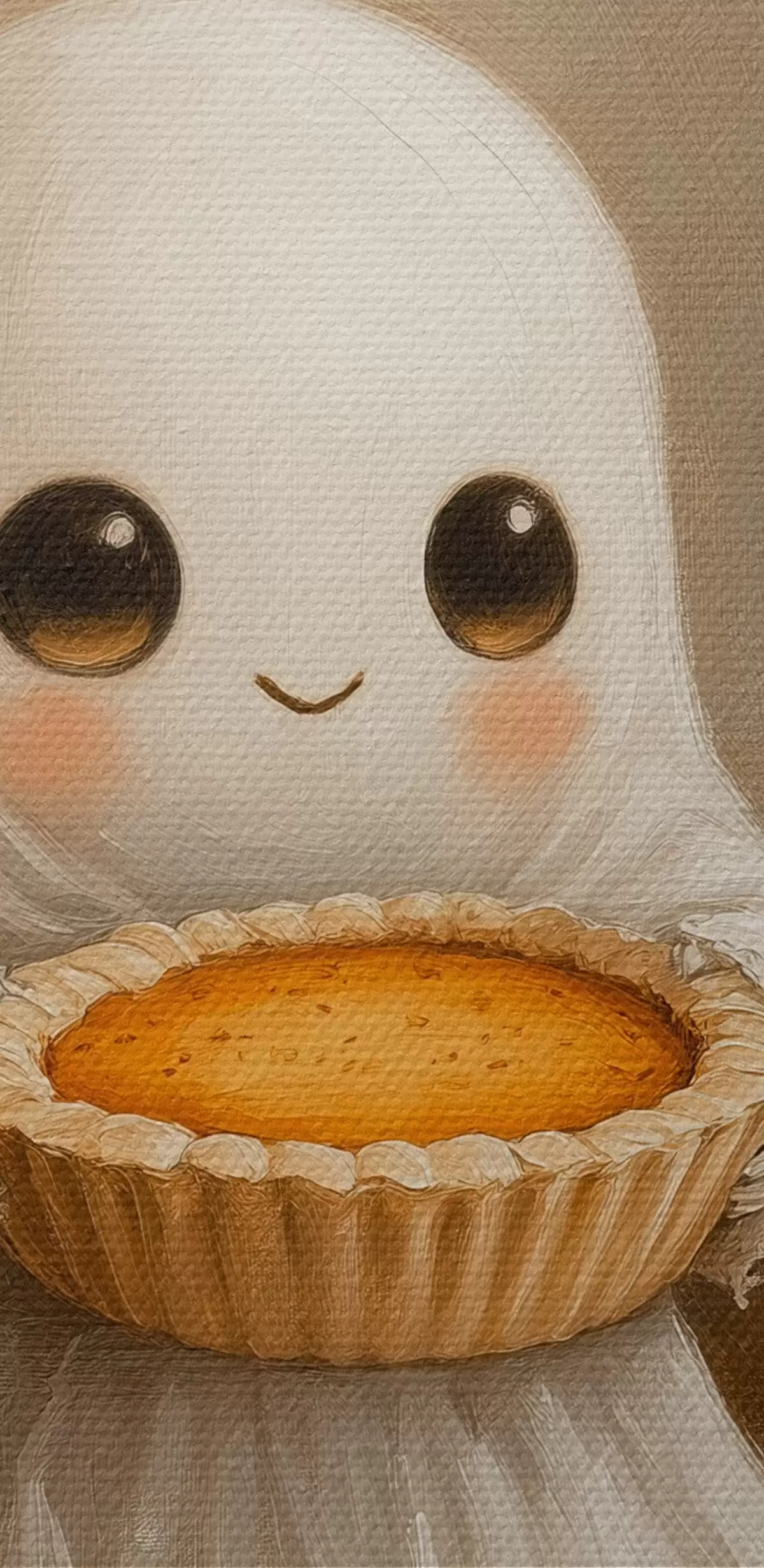 Tableaux rondes Fantôme tenant une tarte à la citrouille Nr r41340