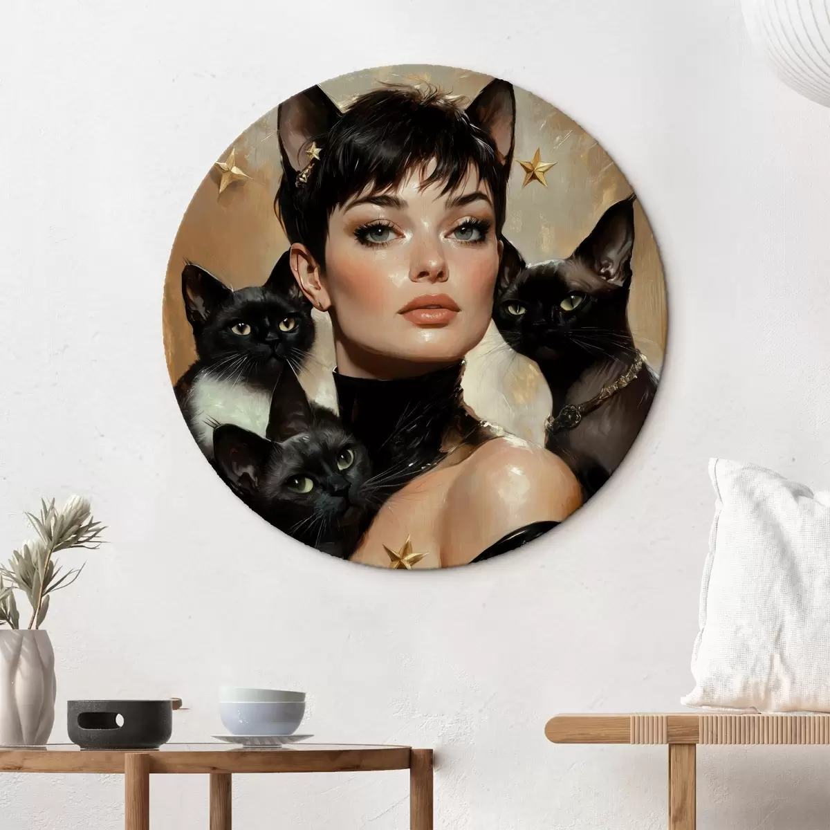 Tableaux rondes Chatte avec des chats noirs Nr r41344