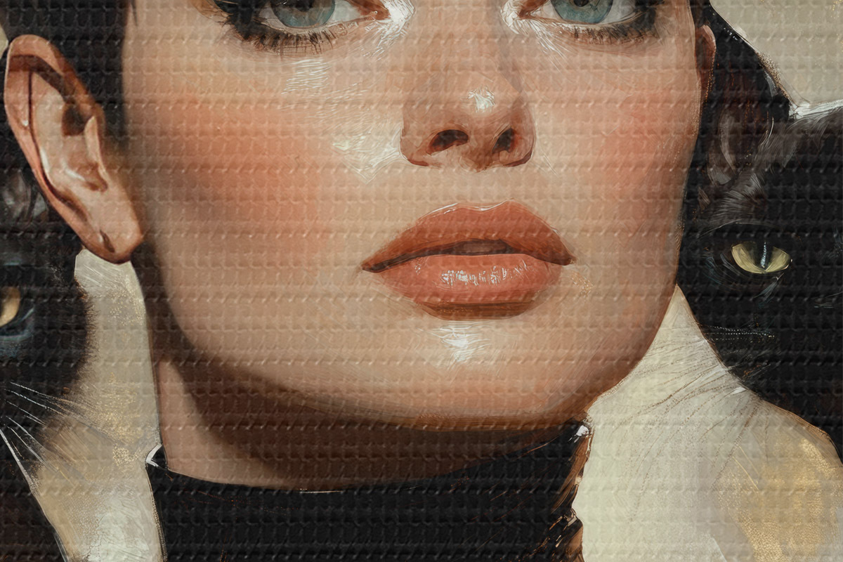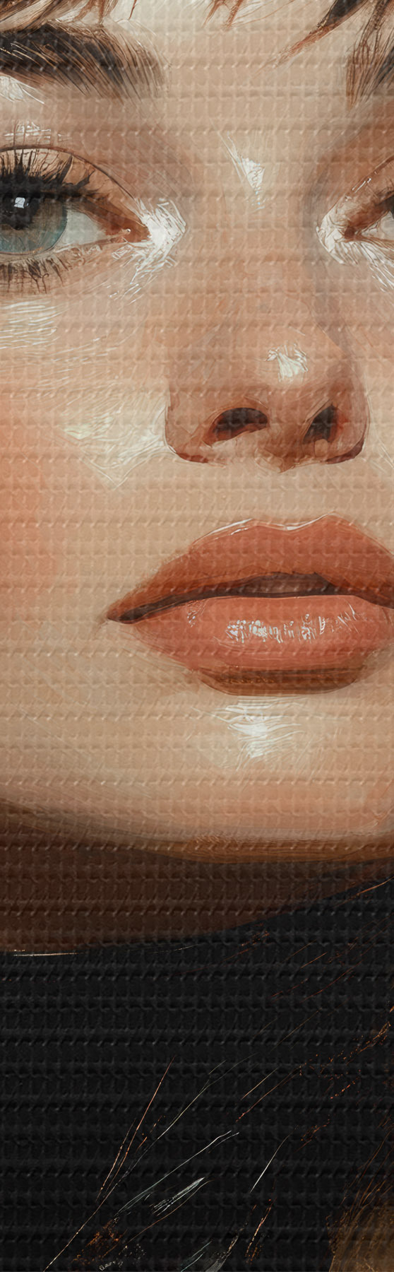 Trois types de matériaux peuvent être commandés : Economic Canvas - matériau dense et durable pour l'impression numérique, identique à la toile de peintre, surface imperméable, reproduction réaliste des détails, matériau à grain moyen. Premium Canvas - la texture ressemble à celle d'une toile de peintre (petits fils entrelacés). Reproduction douce et détaillée de l'image sur une surface mate. Eco-Premium - tissu 100 % coton de haute qualité. Grâce aux fibres naturelles de coton, le matériau est durable et résistant à l'usure. Excellente reproduction des couleurs et des détails.