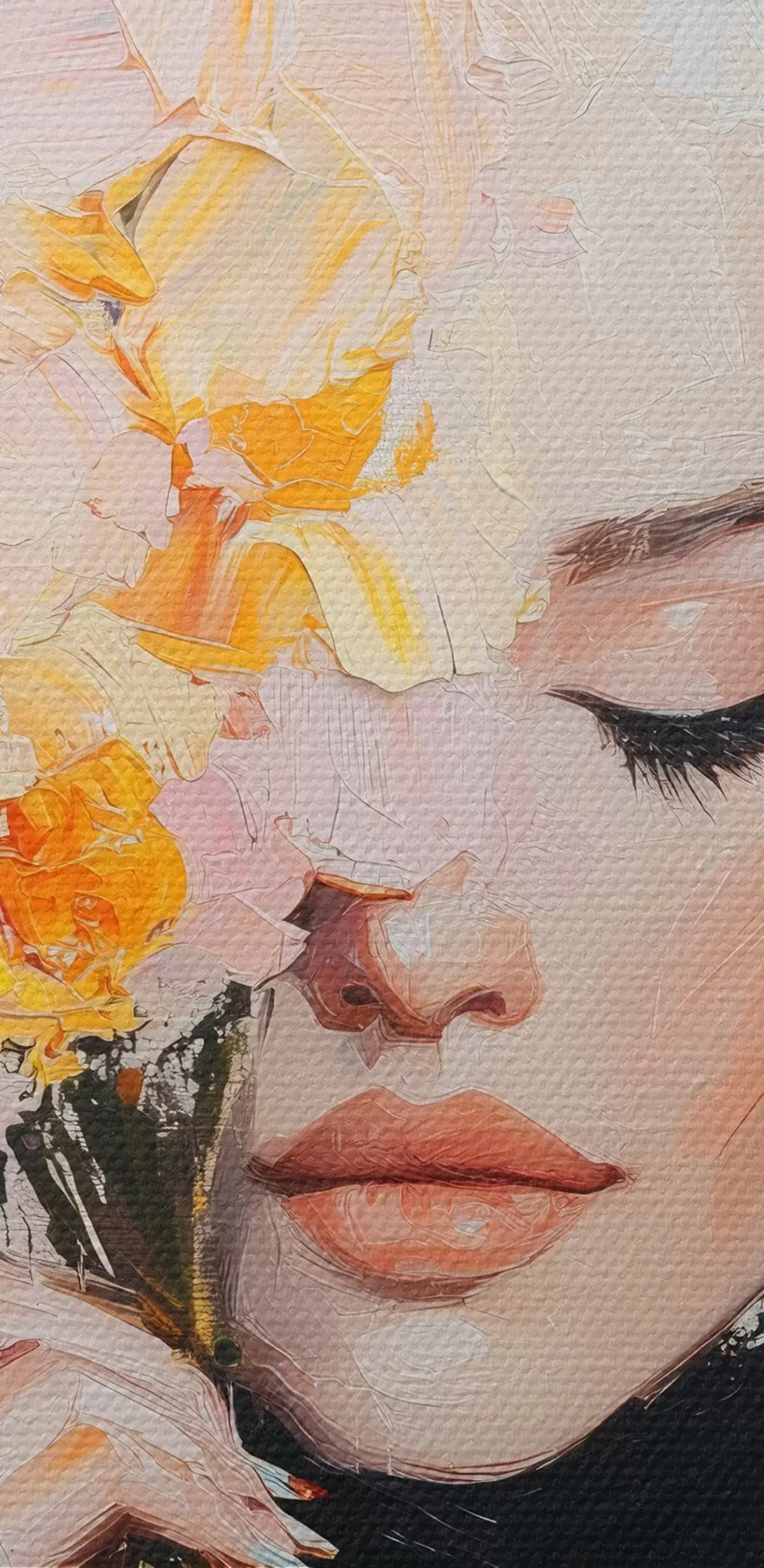 Trois types de matériaux peuvent être commandés : Economic Canvas - matériau dense et durable pour l'impression numérique, identique à la toile de peintre, surface imperméable, reproduction réaliste des détails, matériau à grain moyen. Premium Canvas - la texture ressemble à celle d'une toile de peintre (petits fils entrelacés). Reproduction douce et détaillée de l'image sur une surface mate. Eco-Premium - tissu 100 % coton de haute qualité. Grâce aux fibres naturelles de coton, le matériau est durable et résistant à l'usure. Excellente reproduction des couleurs et des détails.