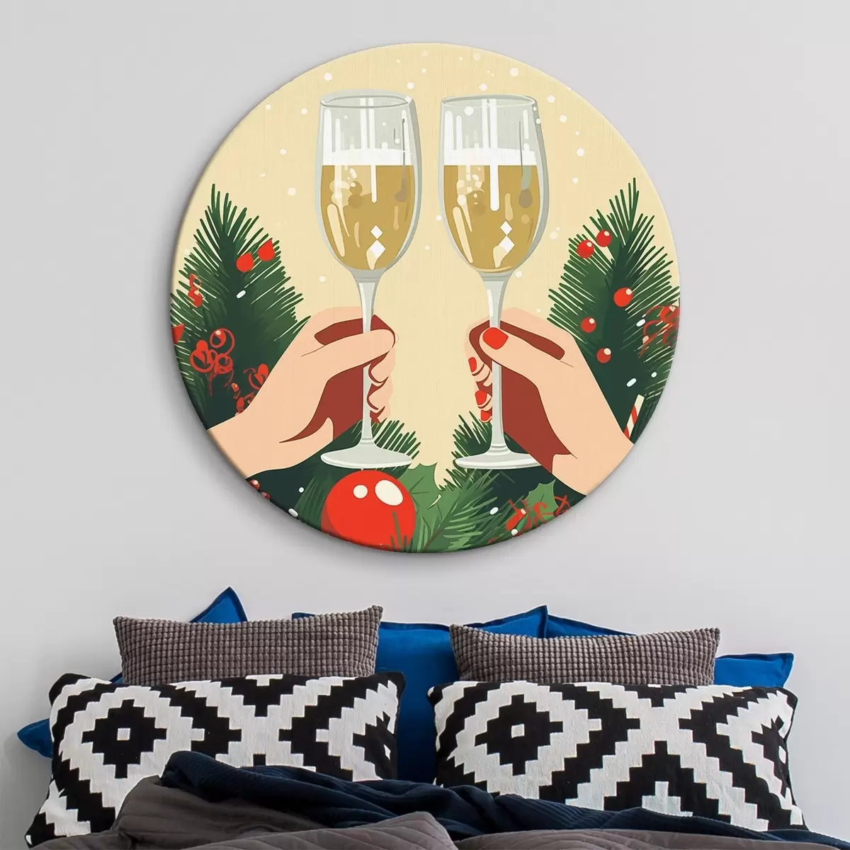 Tableaux rondes Verres de champagne, célébration, Nouvel An, abstraction, pop art r41367