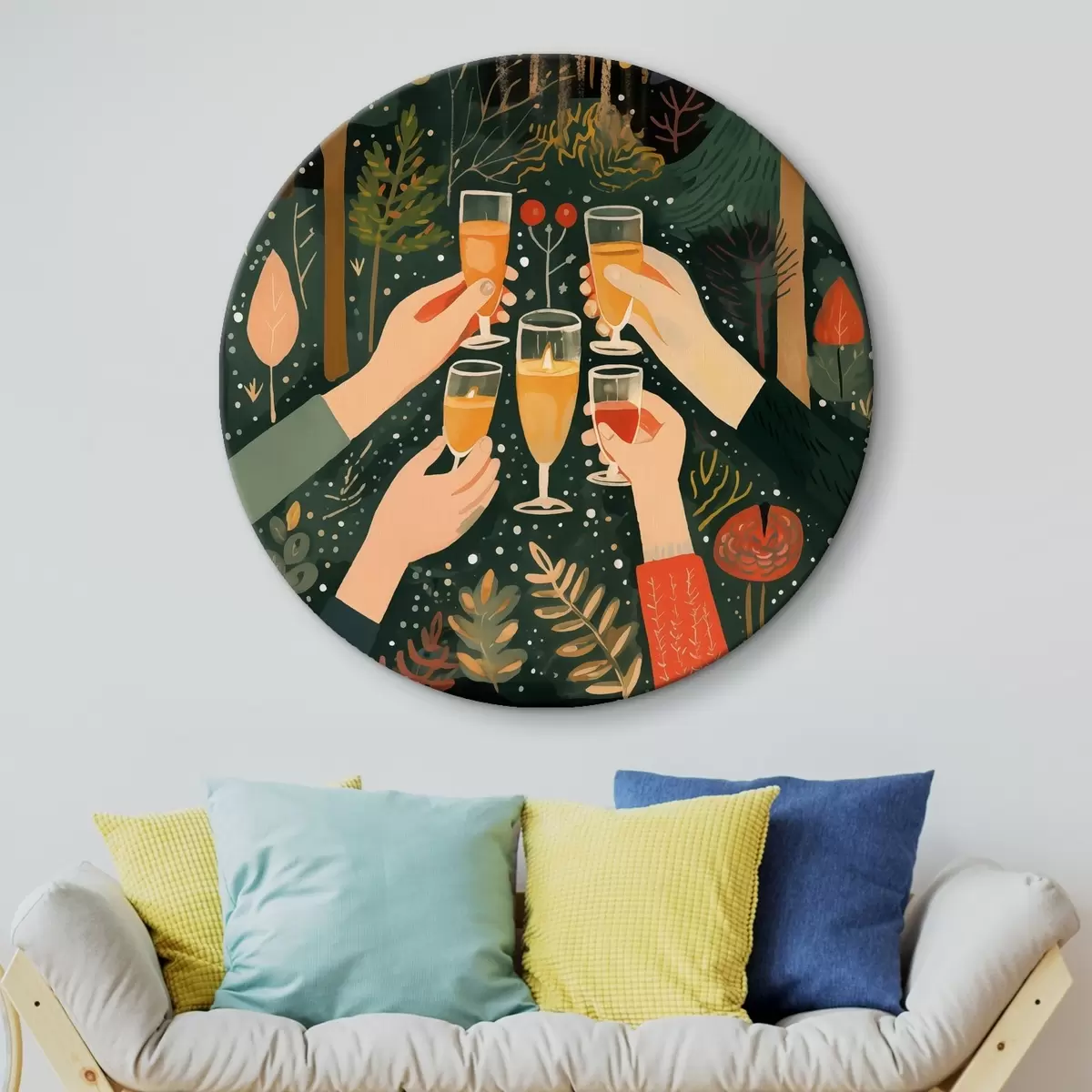 Tableaux rondes Célébration, coupes de champagne, Noël, forêt, art abstrait r41368