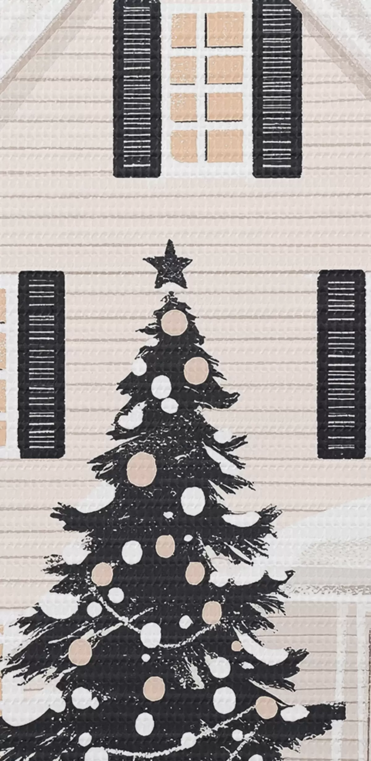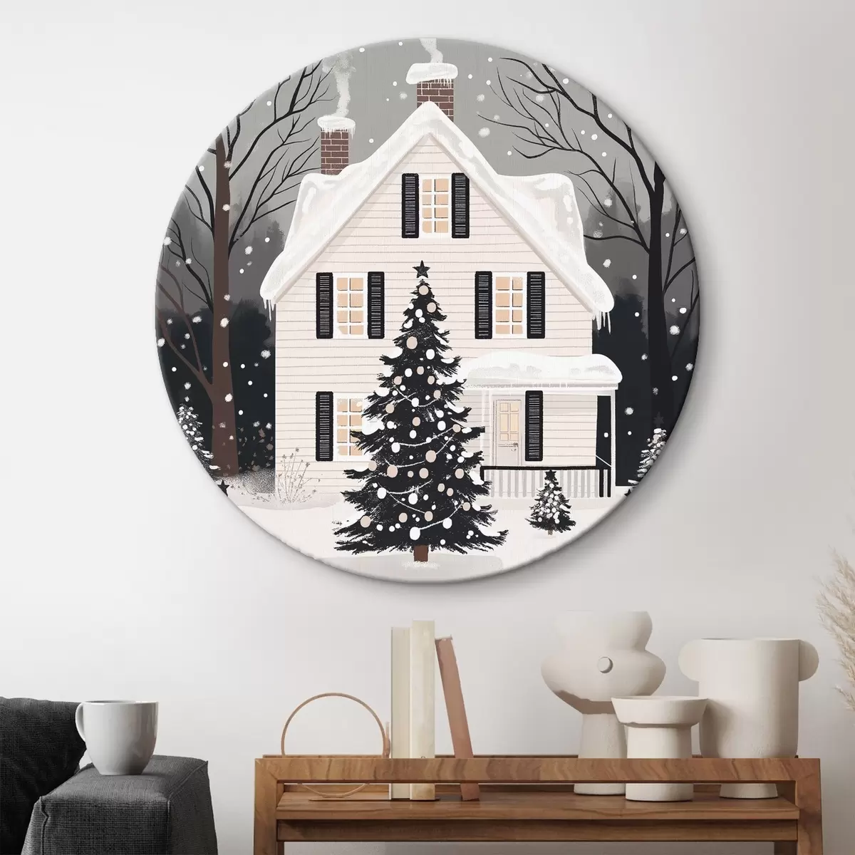 Tableaux rondes Ville d'hiver, sapin décoré, Noël, forêt, belle maison r41371