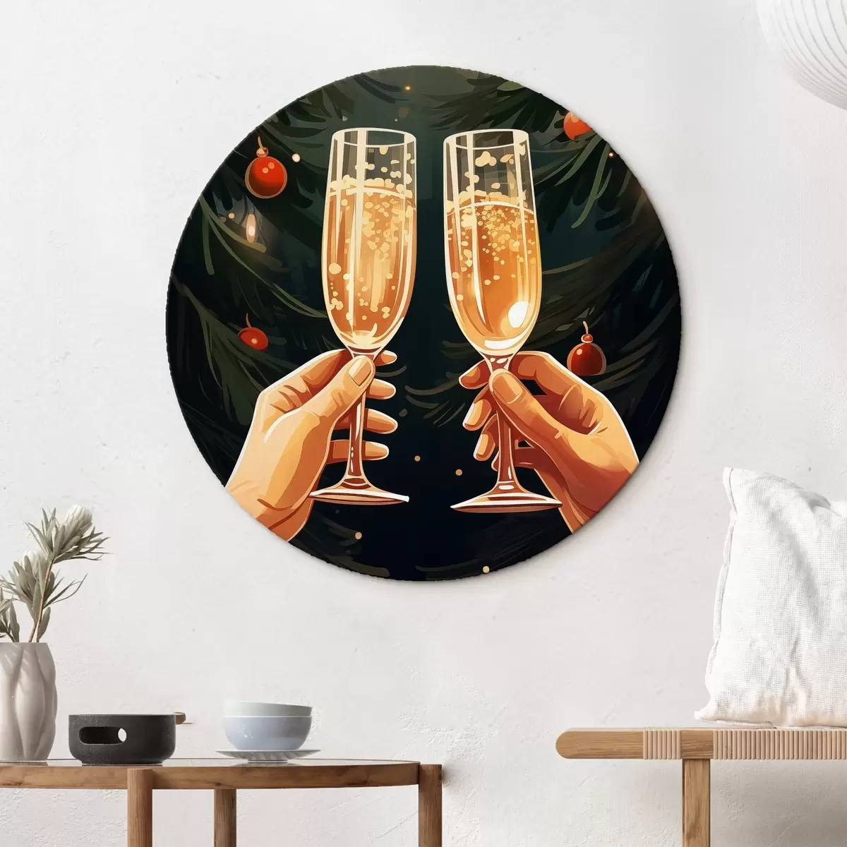 Tableaux rondes Célébration, coupes de champagne, Noël, sapin, bougies, lumières de Noël Nr r41373