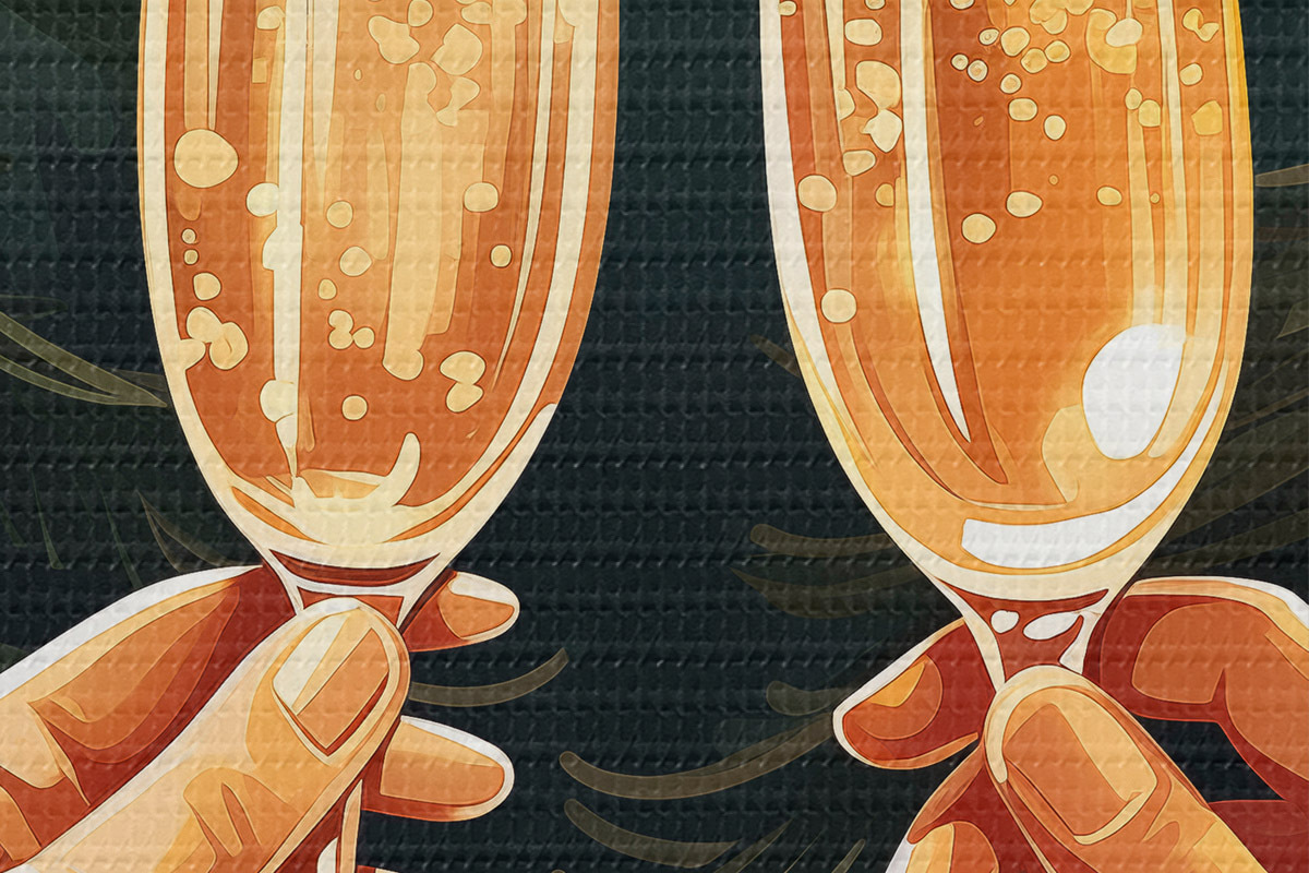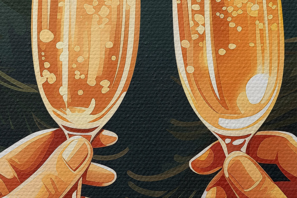 Tableaux rondes Célébration, coupes de champagne, Noël, sapin, bougies, lumières de Noël r41373