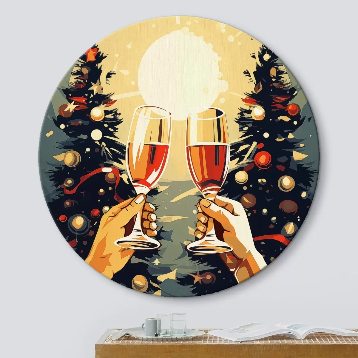 Tableaux rondes Verres de champagne, Noël, Nouvel An, abstraction, pop art, pins r41374