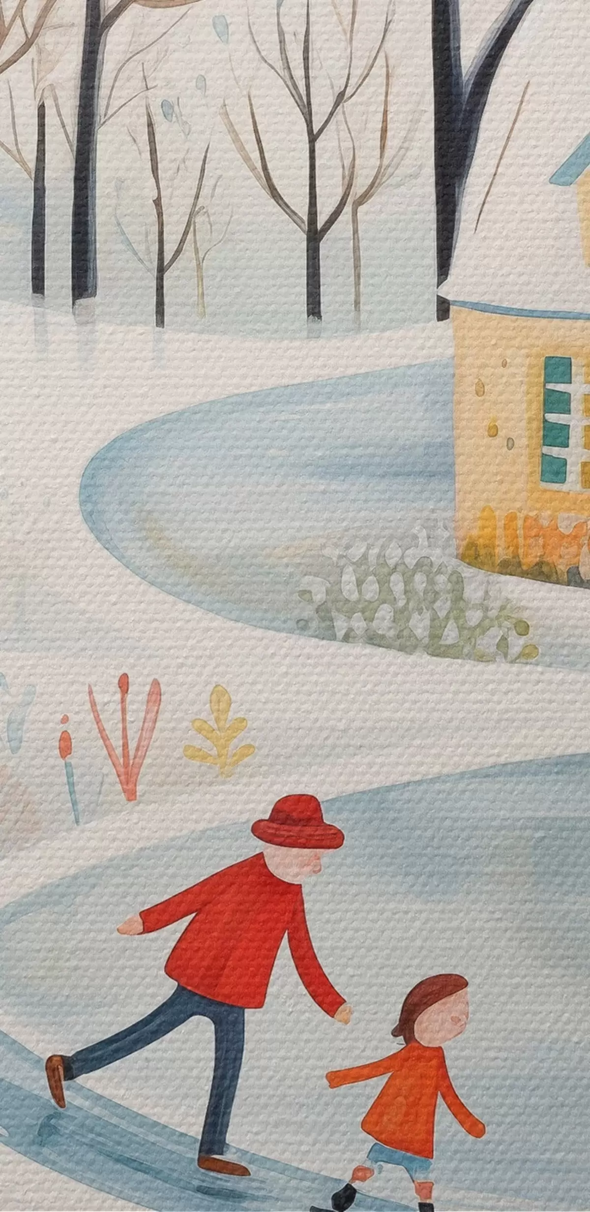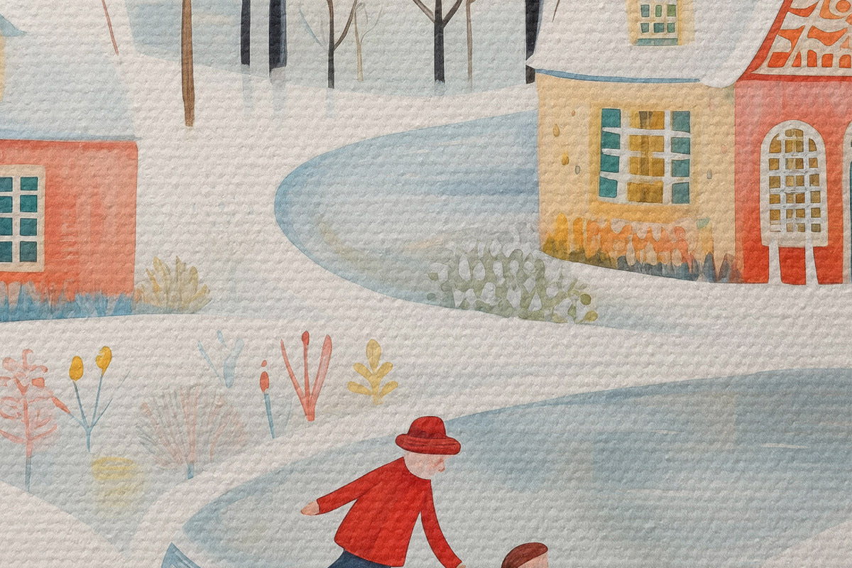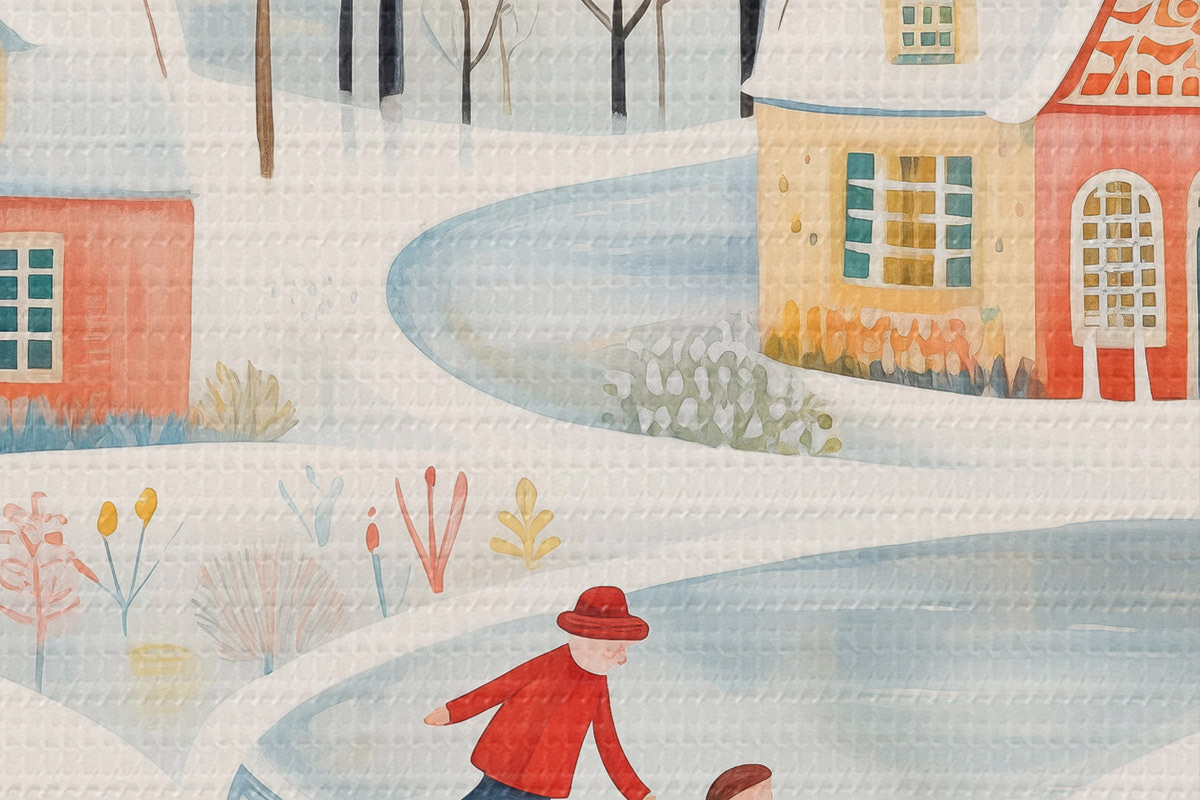 Tableaux rondes Village d'hiver, forêt, fleurs, patins à glace, maisons colorées r41378
