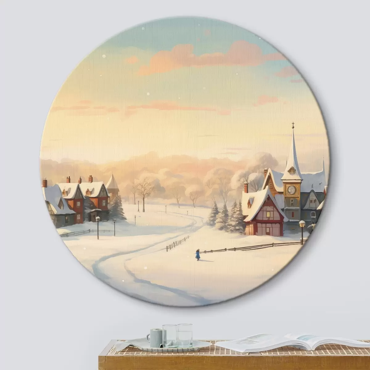 Tableaux rondes Pays des merveilles, maisons, ciel couchant, arbres, aquarelle r41383