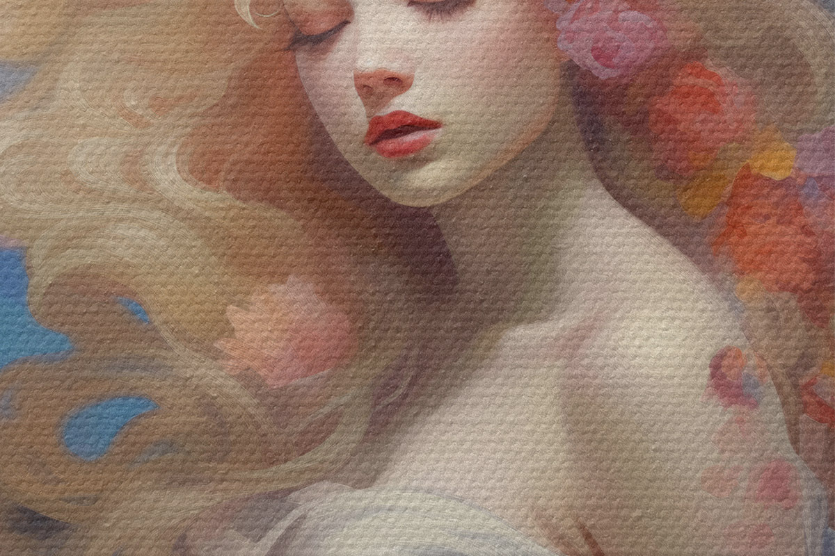 Trois types de matériaux peuvent être commandés : Economic Canvas - matériau dense et durable pour l'impression numérique, identique à la toile de peintre, surface imperméable, reproduction réaliste des détails, matériau à grain moyen. Premium Canvas - la texture ressemble à celle d'une toile de peintre (petits fils entrelacés). Reproduction douce et détaillée de l'image sur une surface mate. Eco-Premium - tissu 100 % coton de haute qualité. Grâce aux fibres naturelles de coton, le matériau est durable et résistant à l'usure. Excellente reproduction des couleurs et des détails.