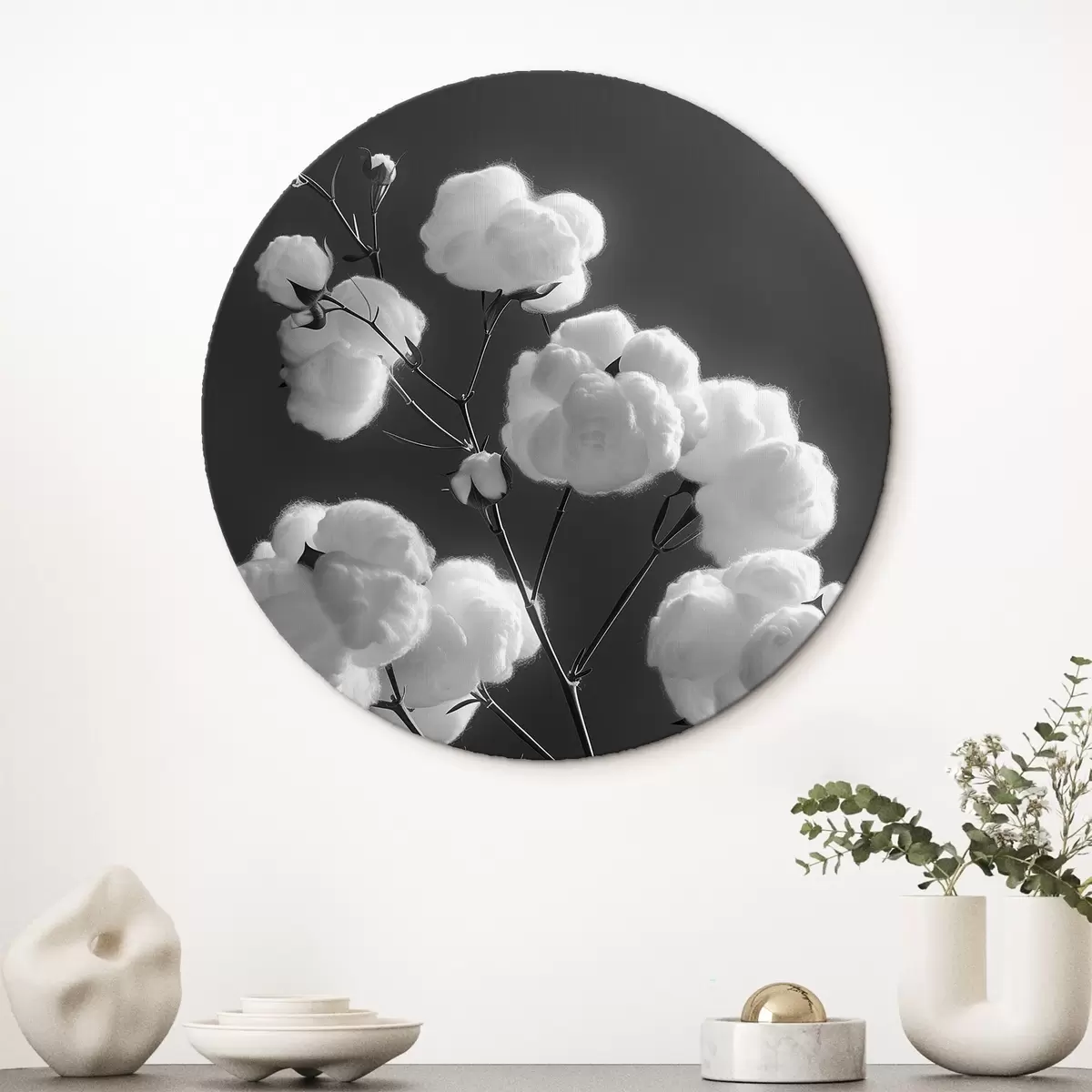Tableaux rondes Branches de coton, version noir et blanc r41429