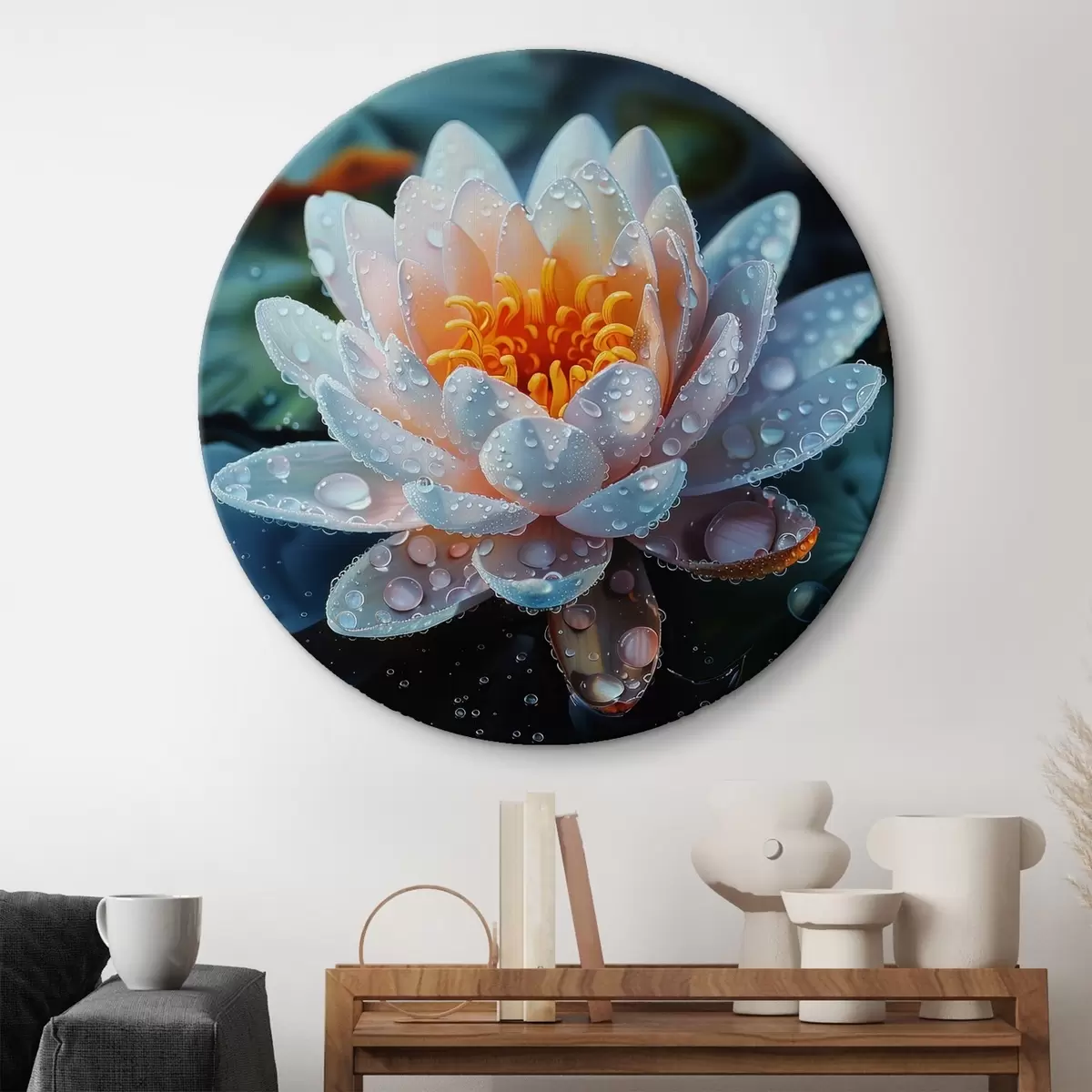 Tableaux rondes Fleur de lotus avec gouttes de rosée Nr r41433